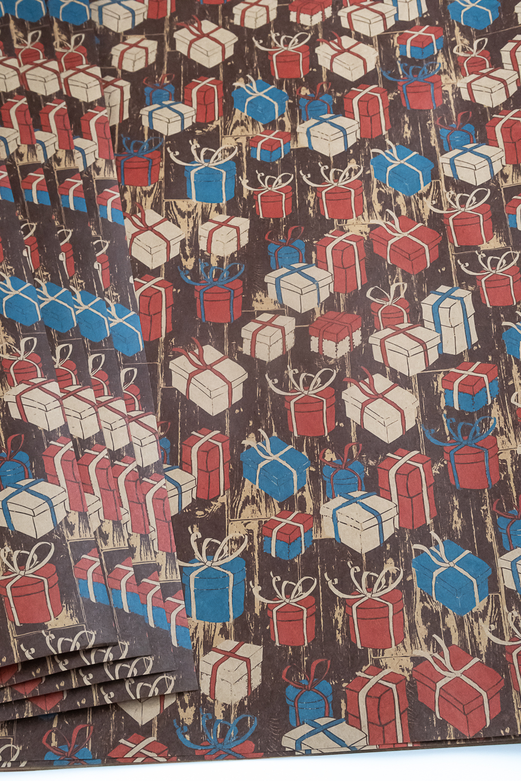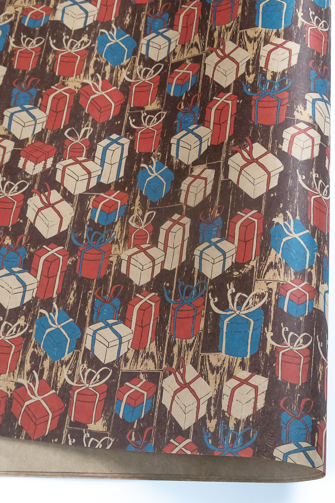 Бумага упаковочная подарочная крафт "подарки-вуд", в наборе 4 листа 70х100см, Т-Пак