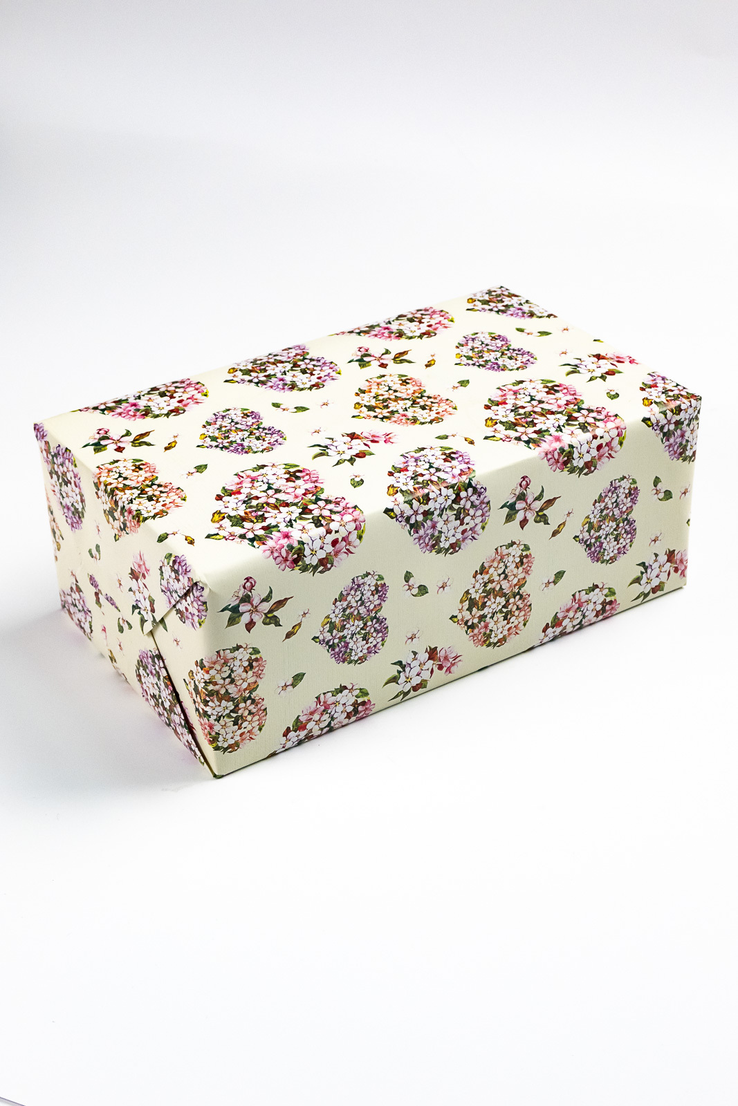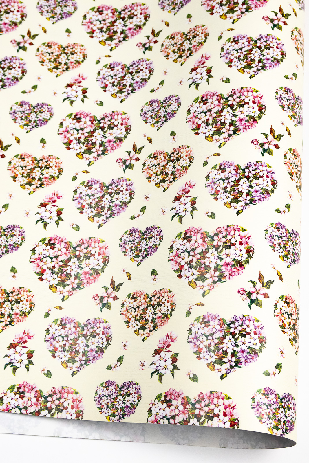 Бумага упаковочная подарочная "цветочные сердца", в наборе 4 больших листа 68х98см, Т-Пак