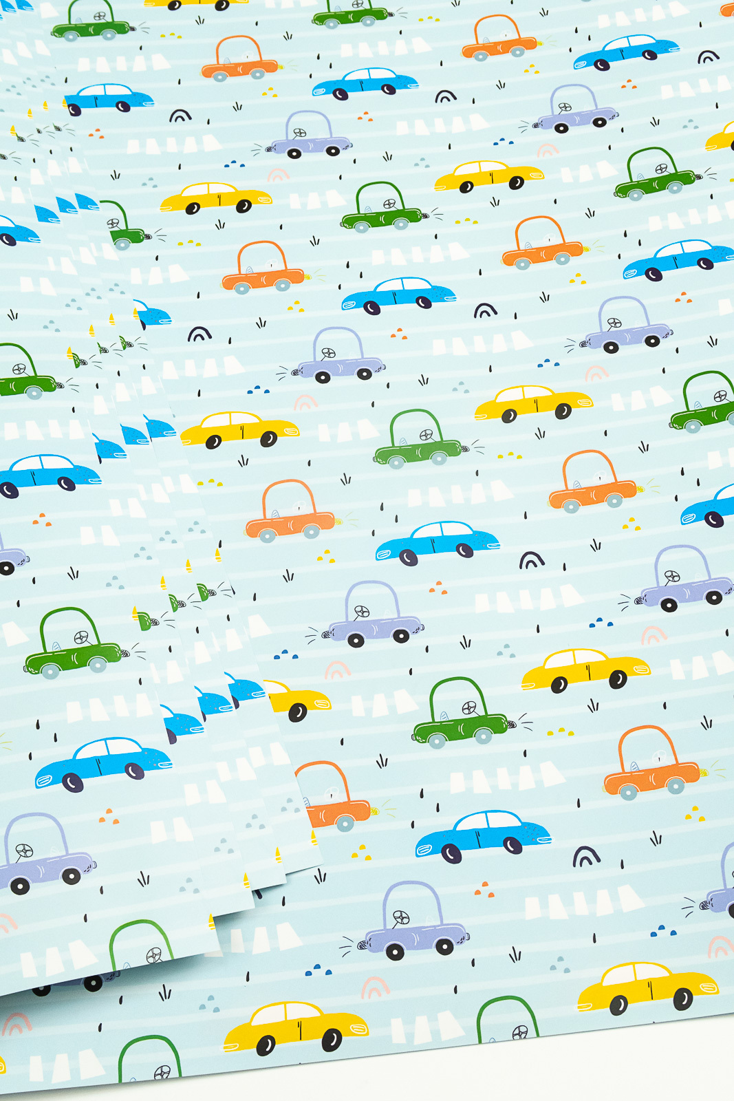 Бумага упаковочная подарочная "дорожное движение", в наборе 4 больших листа 68х98см, Т-Пак