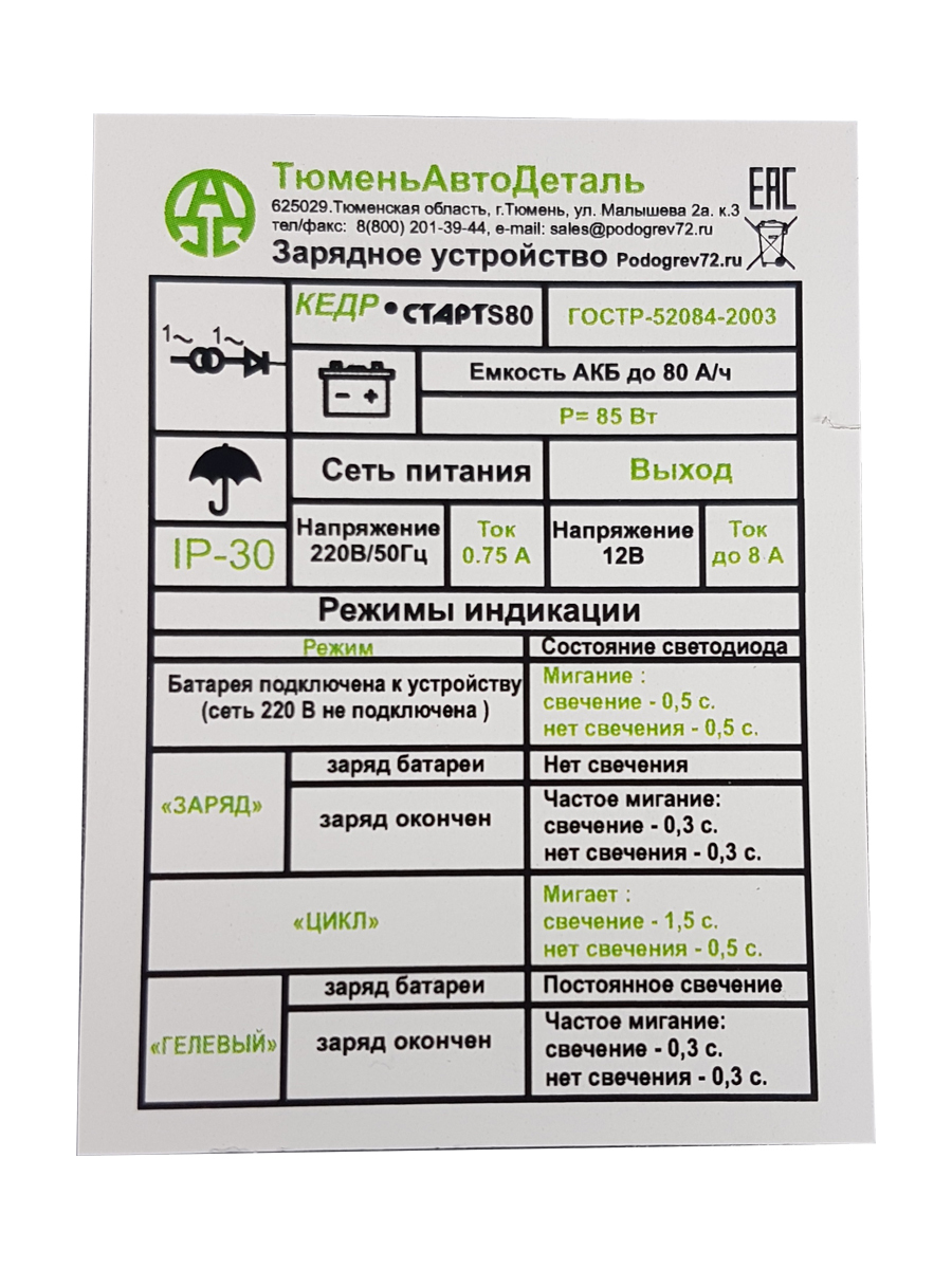 Зарядное устройство "КЕДР-СТАРТ" S80