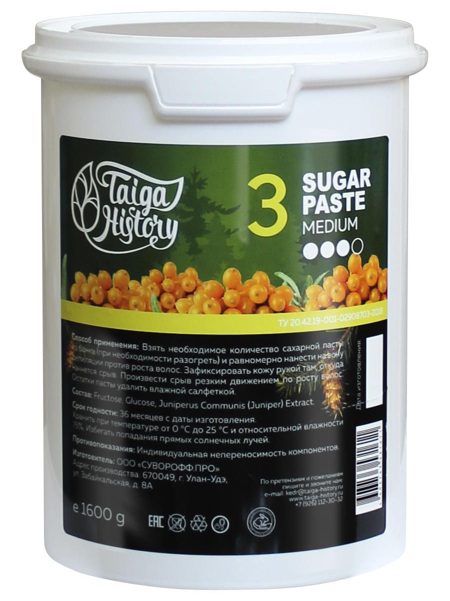 Taiga History Сахарная паста для депиляции средняя на 100% фруктозе, 400 г (Тайга Хистори)