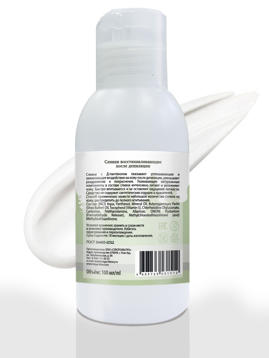 Taiga History Сливки восстанавливающие с Д-пантенолом после депиляции, 100 мл