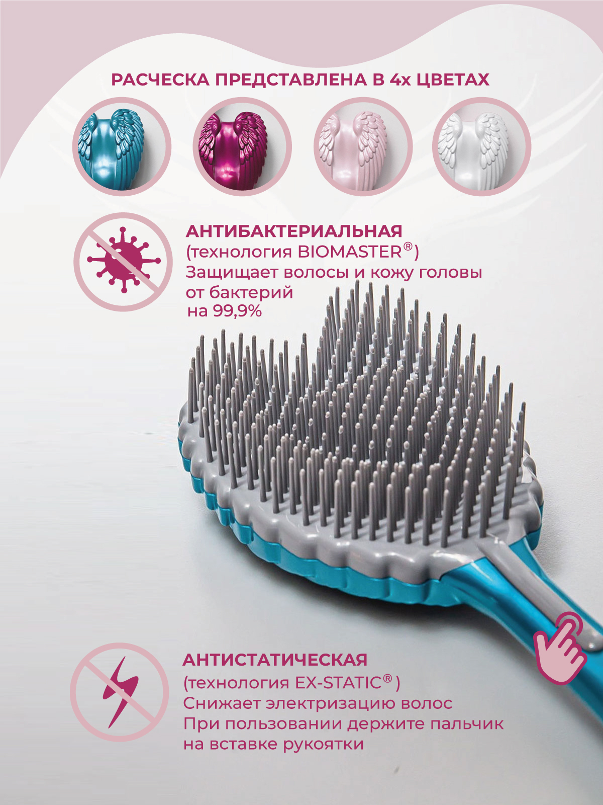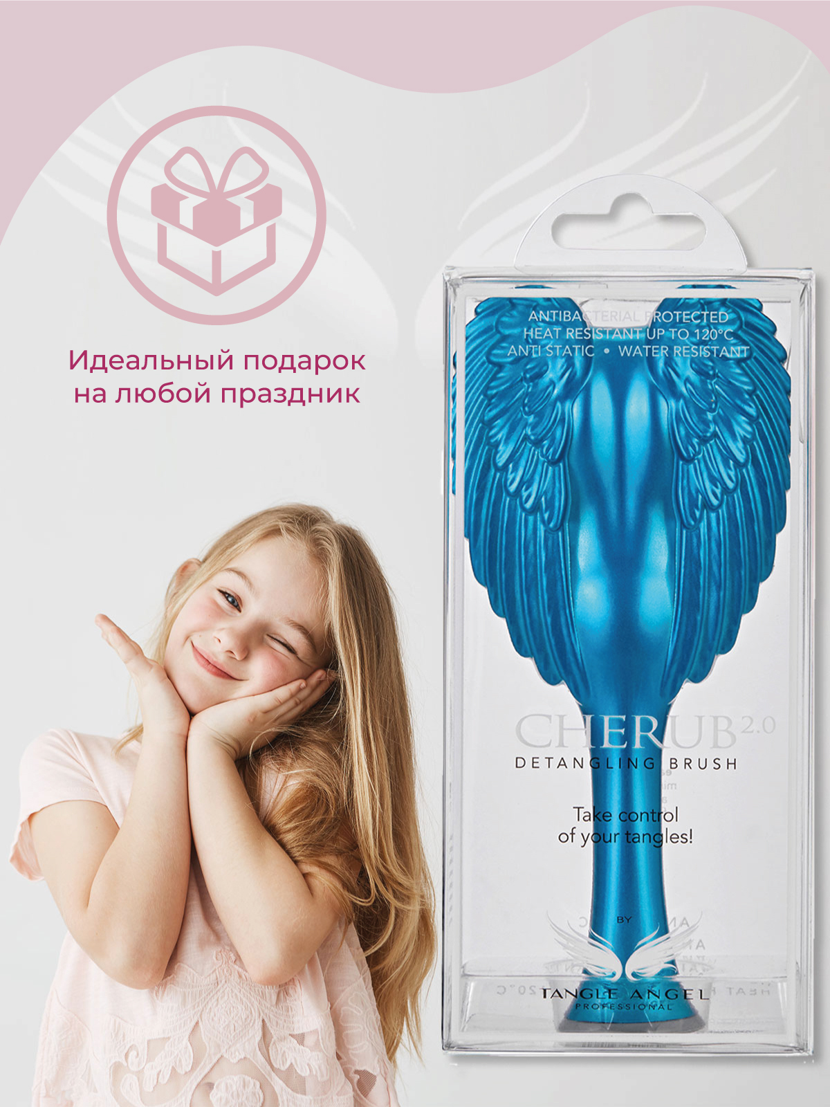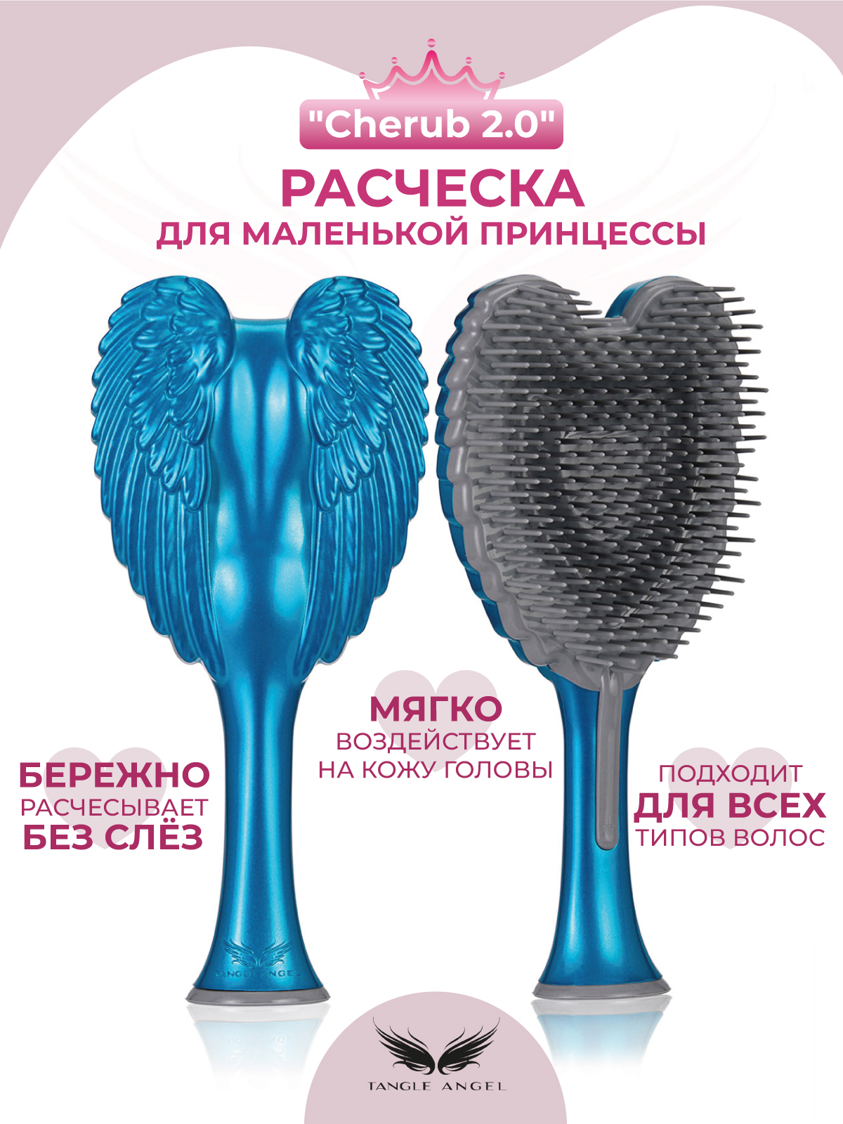 Tangle Angel Для юной леди расческа с антистатическим и антибактериальным действием для девочек Cherub Turquoise