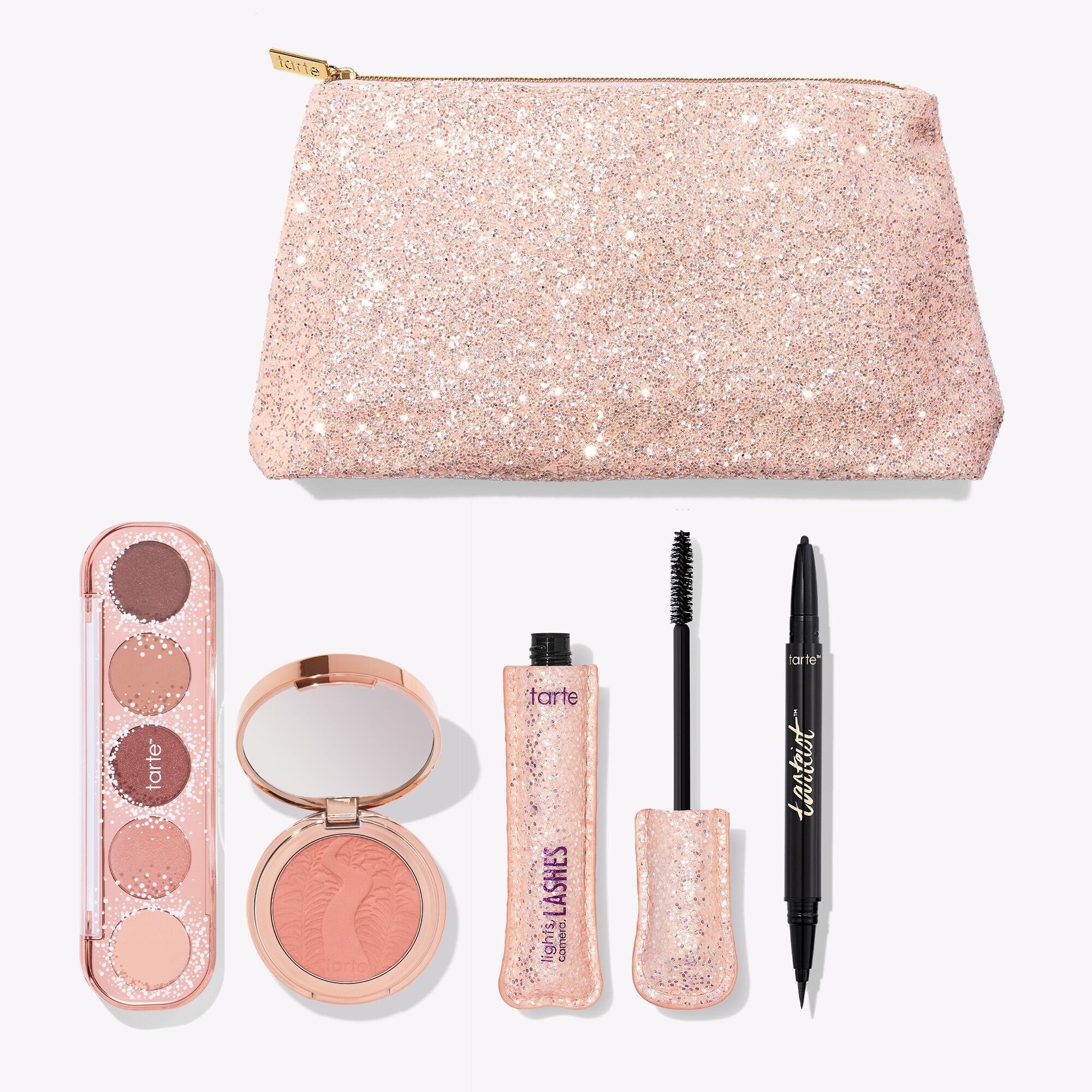 Tarte 5в1 Набор теней для век, двойной подводкой для глаз, тушью, румянами и косметичкой Gift & Glitz