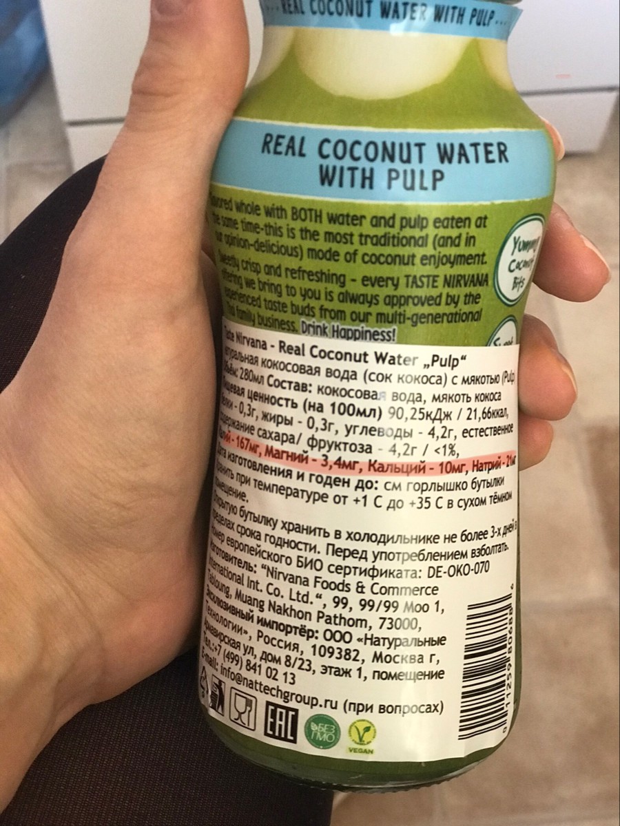 TASTE NIRVANA Натуральный сок кокоса с мякотью 280 мл