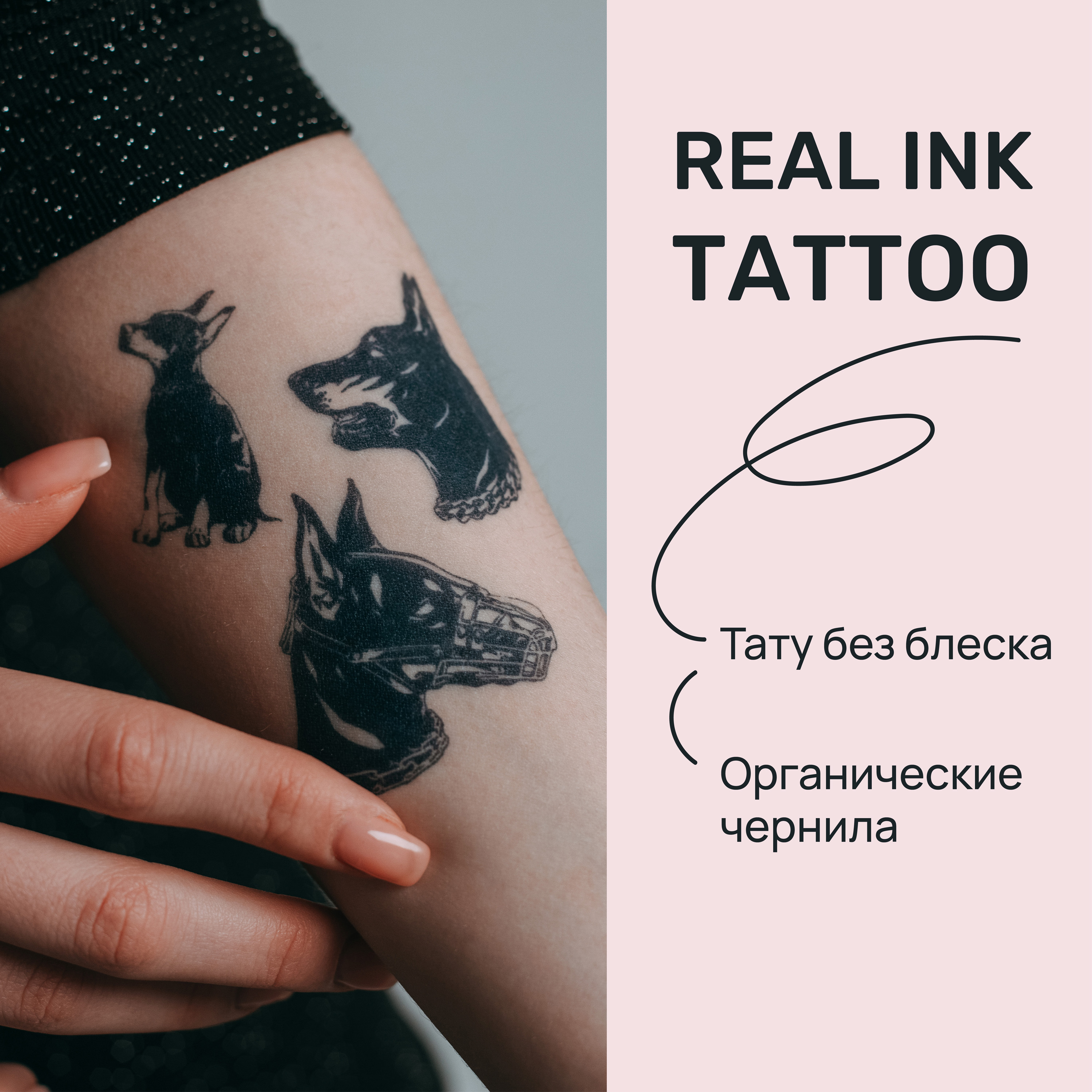 TATTS Временная тату БЕЗ ПЛЕНКИ, "Dark Dobers" 10*10см (для взрослых и детей)