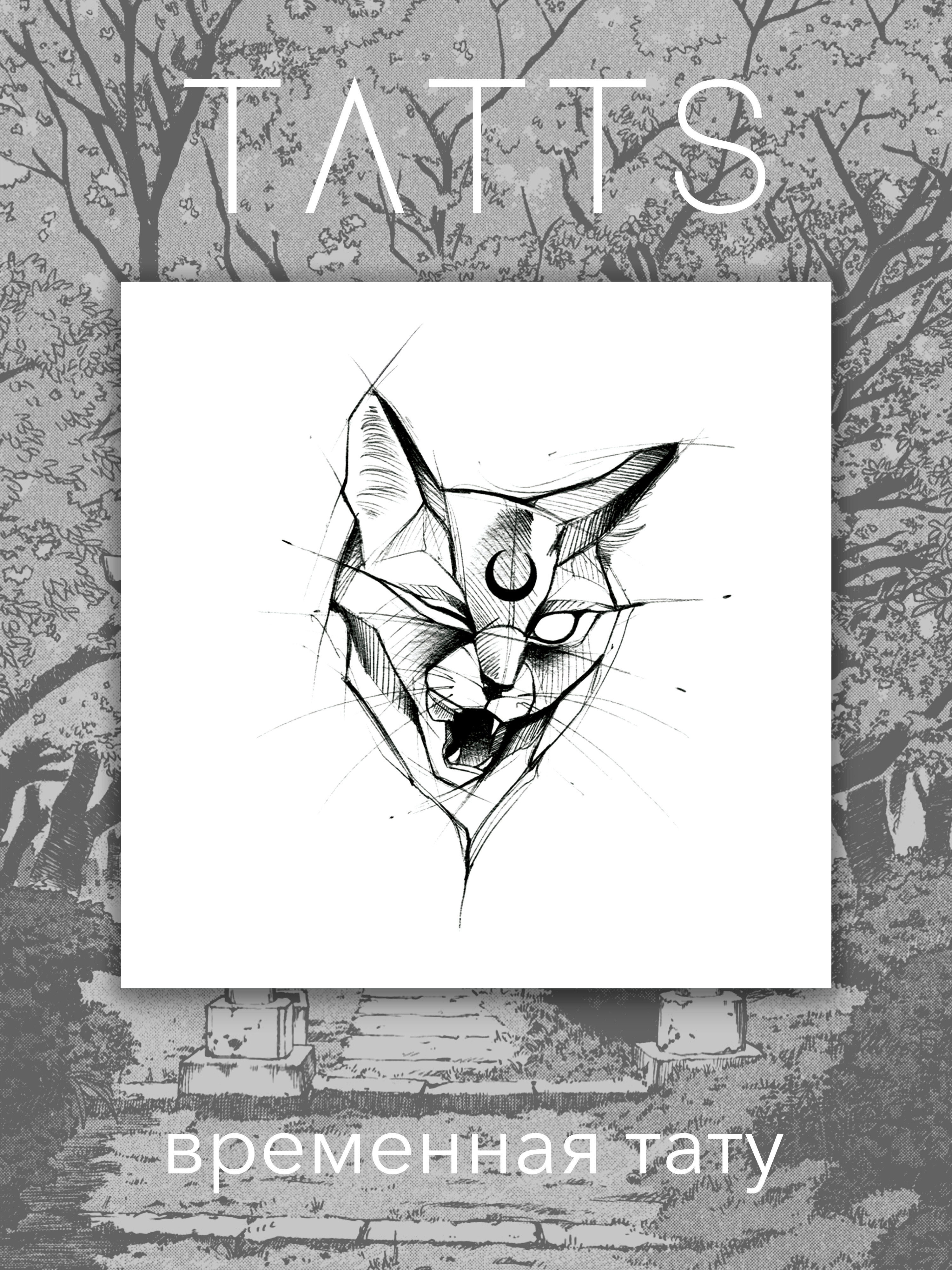 TATTS Переводные татуировки, Кошка 10*10см (для взрослых и детей)