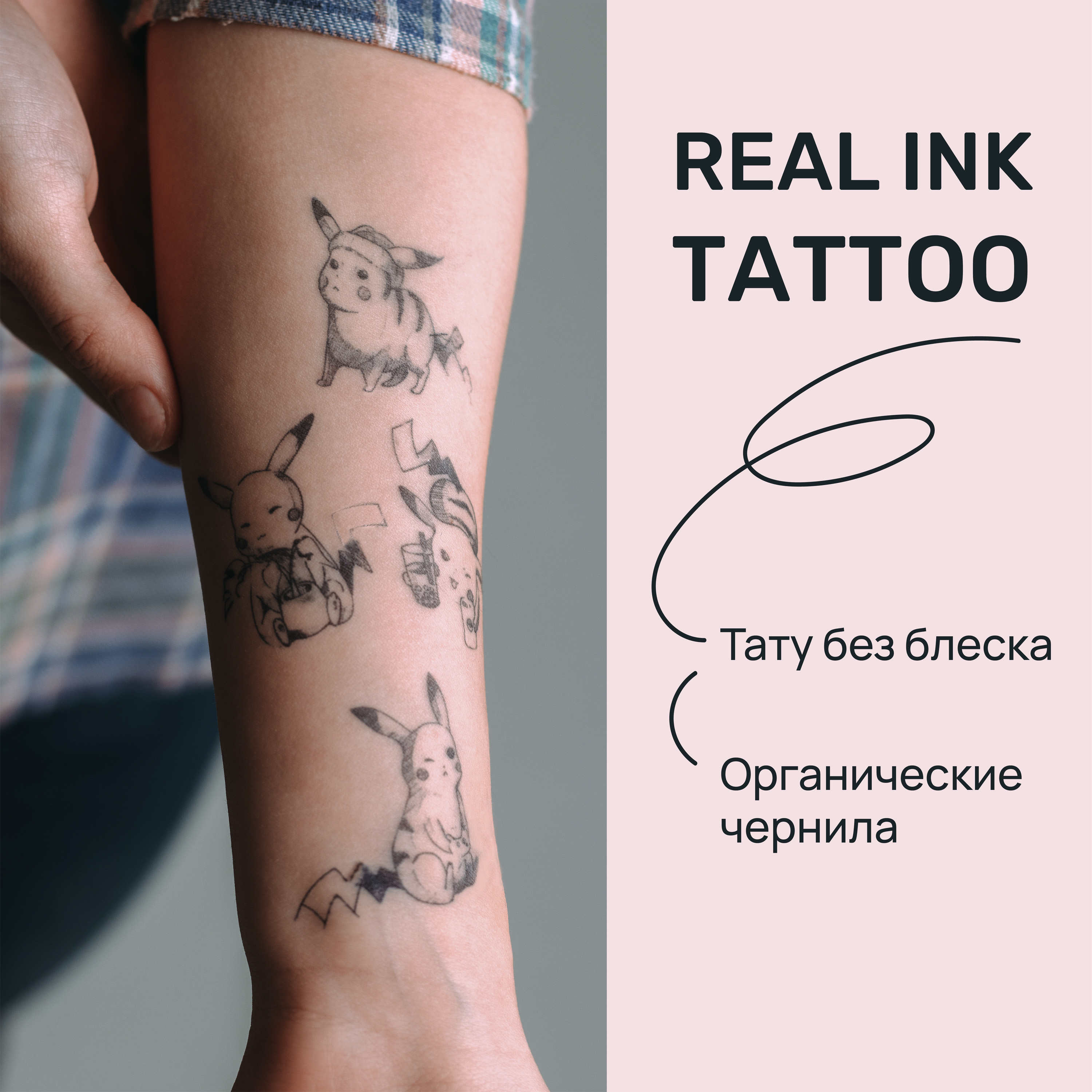 TATTS Временная тату БЕЗ ПЛЕНКИ, "Dark Пикачу" 10*10см (для взрослых и детей)
