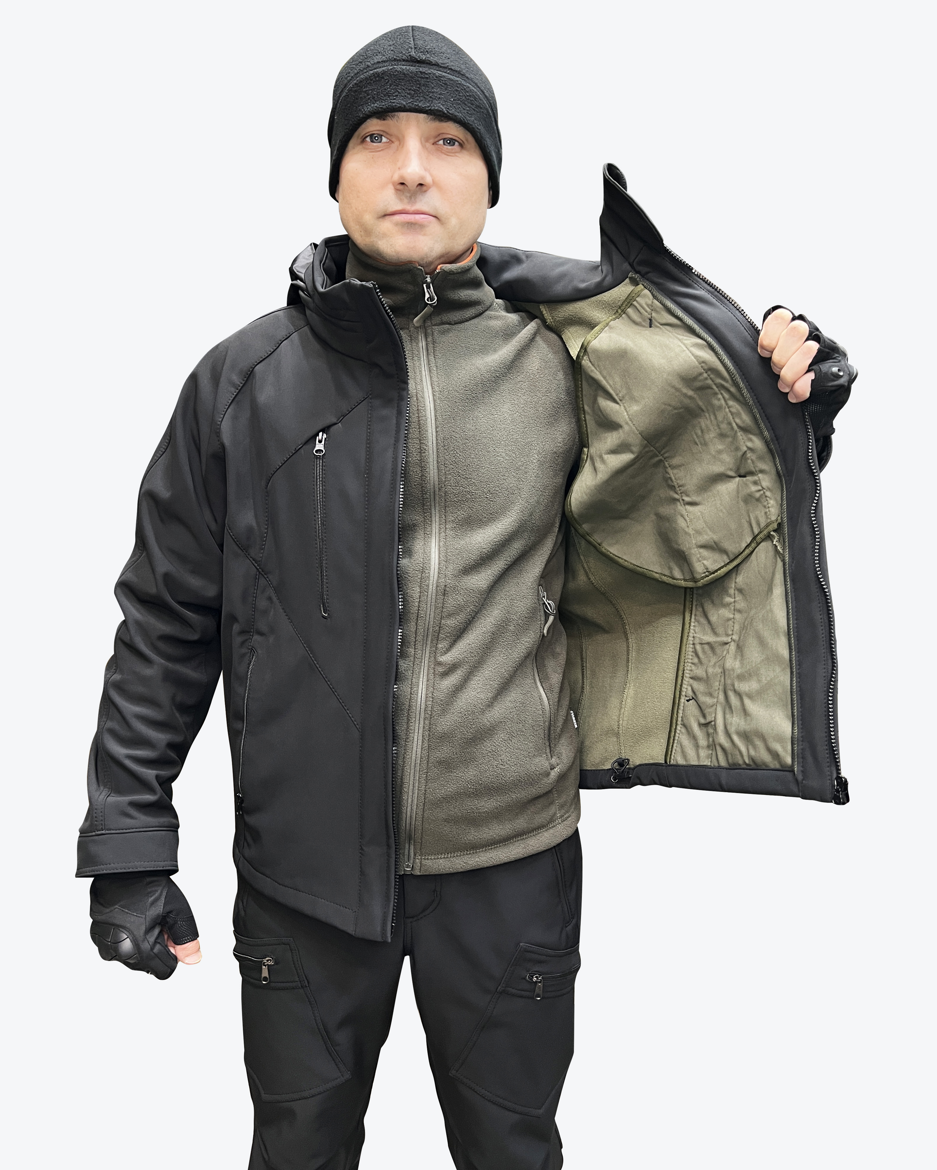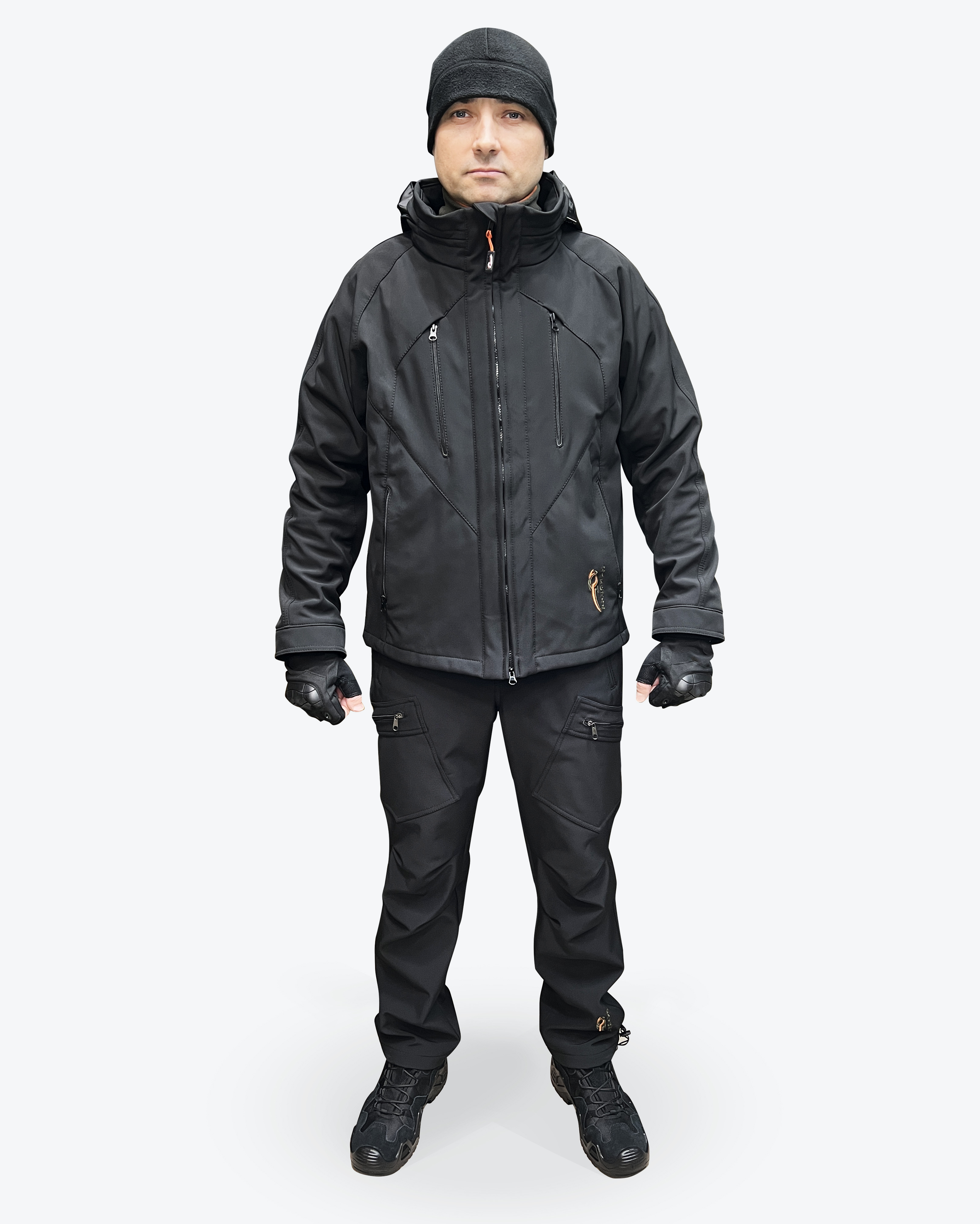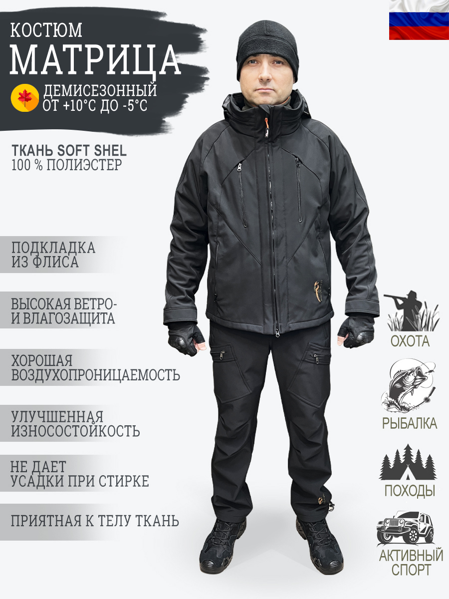 Костюм МАТРИЦА Софтшел черный для охоты и рыбалки