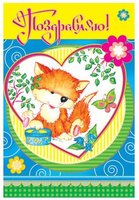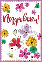 Открытка евроформата Поздравляю! Текст. Пластизоль