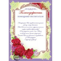 Благодарность помощнику воспитателя А4 с текстом - Ш-6521