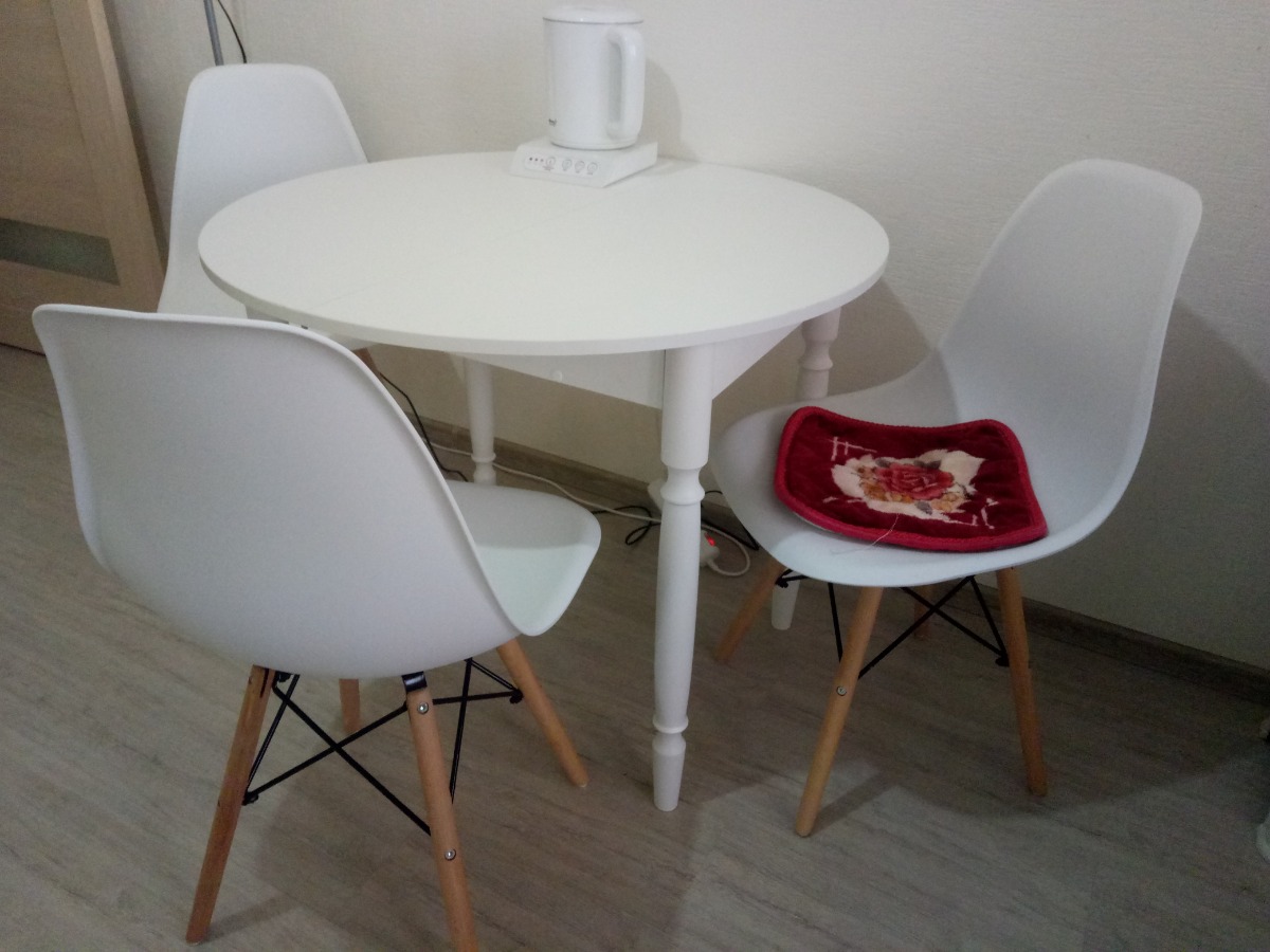 Стол обеденный Раздвижной Раздвижной раздвижной "Круглый" ноги белые, 90х90х75 см