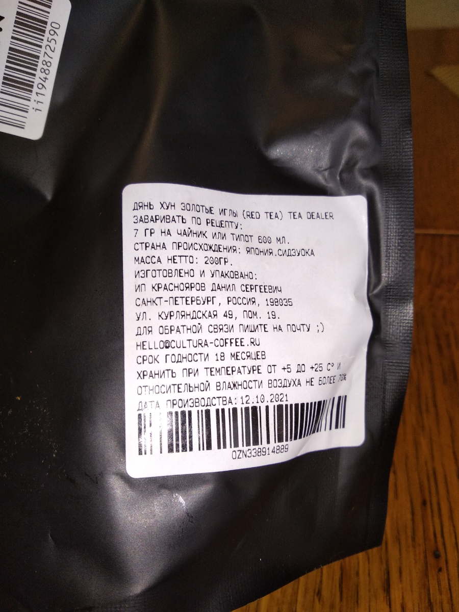 Китайский Красный Чай Дянь Хун Чай 200 гр, Листовой Рассыпной Tea Dealer (Dian Hong Tea, Дань Хун, Дан Хун, Юньнаньский Чай)