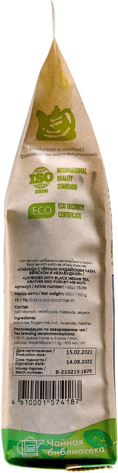 Чай листовой Teaco Чайная библиотека Лаванда с вереском и незабудкой, черный, 100 г