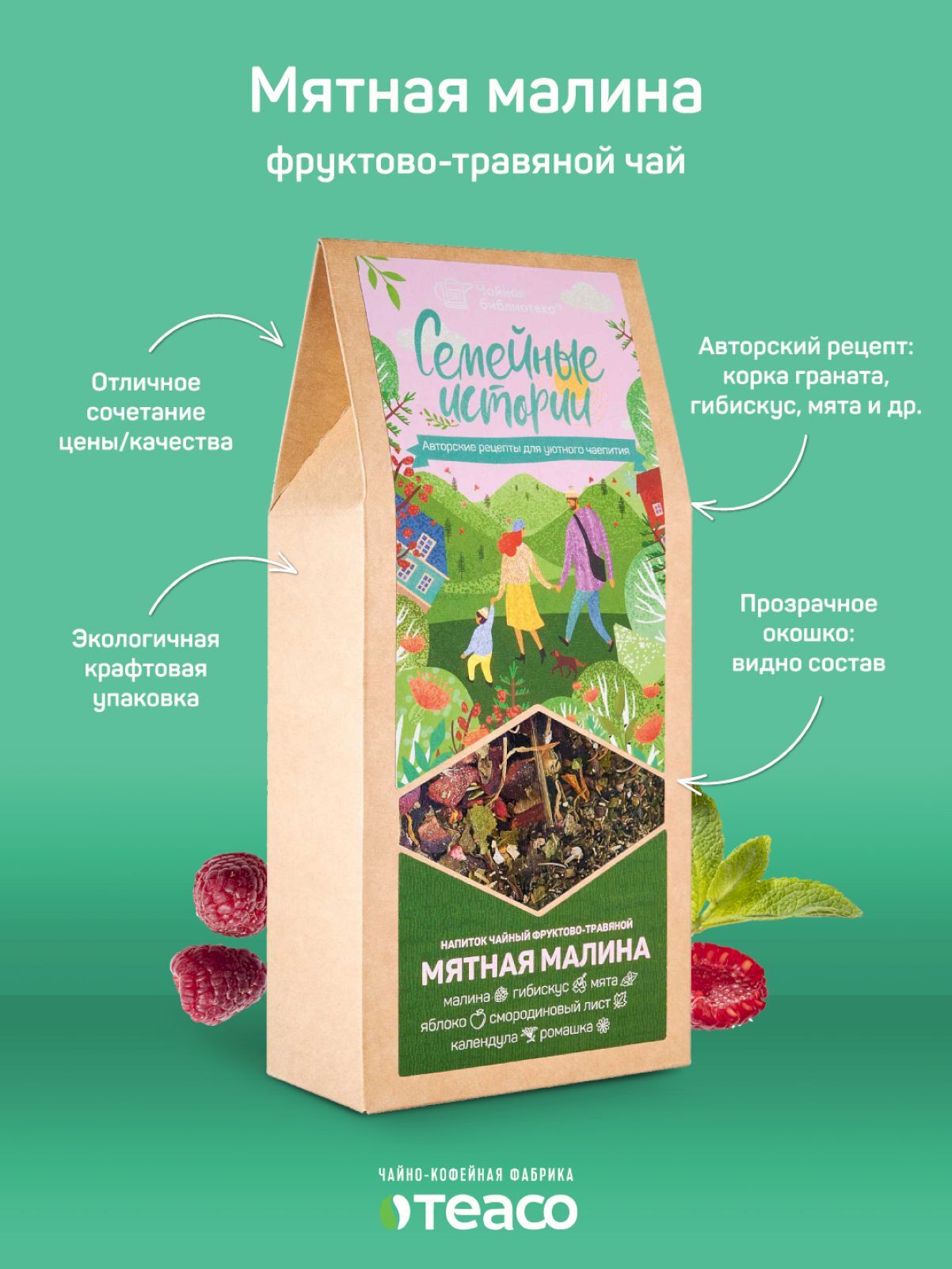 Чай листовой ягодный Коллекция чая Семейные истории Мятная малина, с травами, 60 г