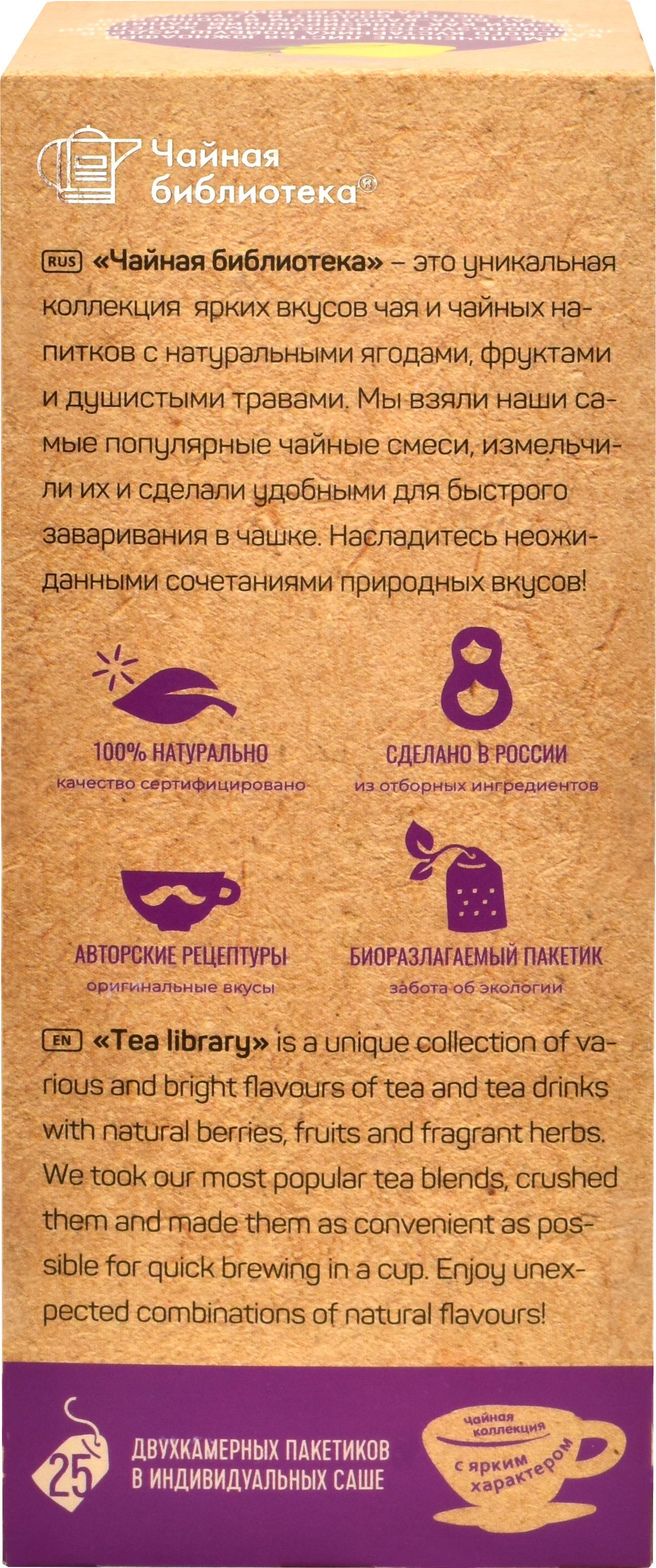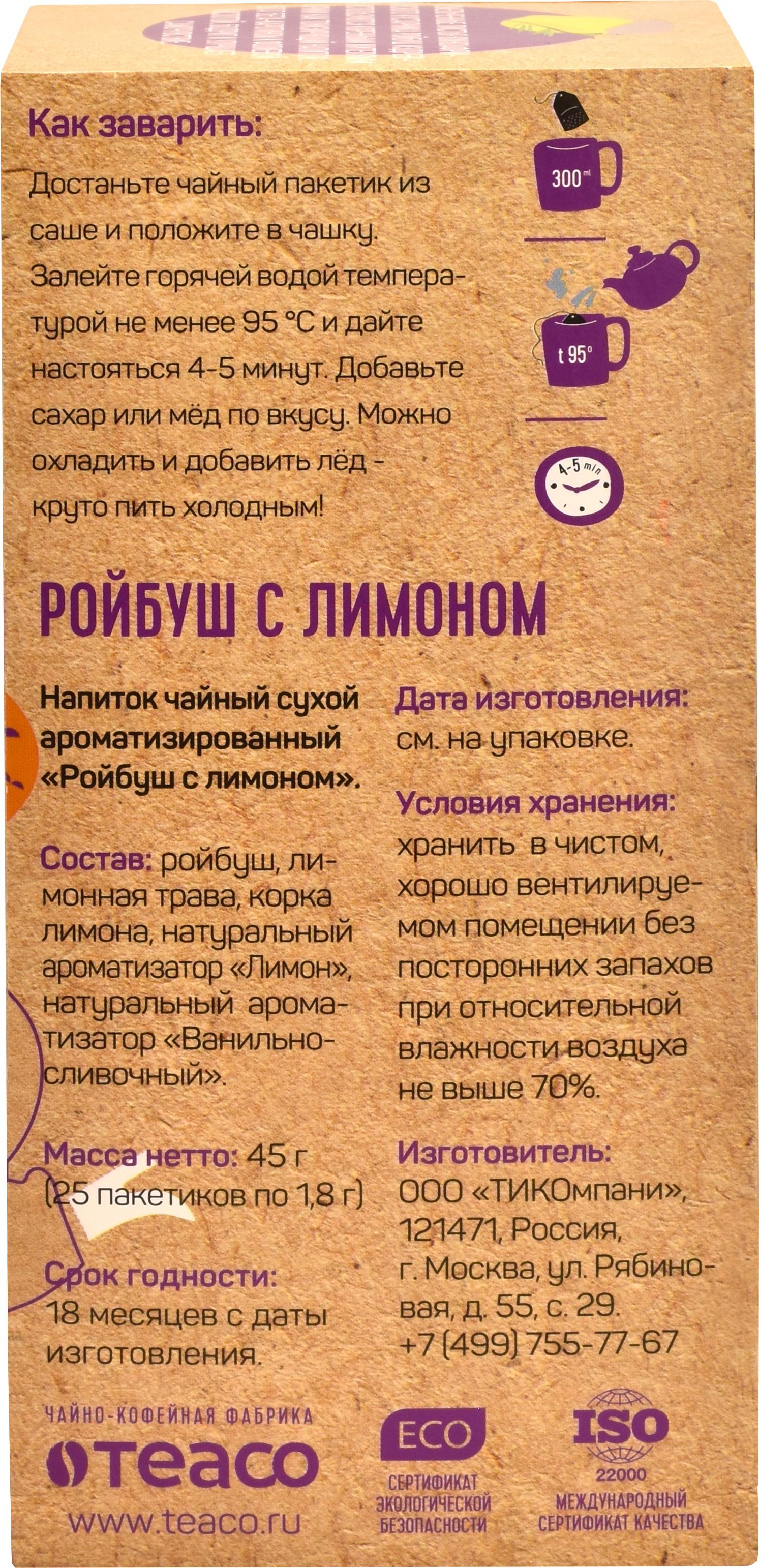 Чай в пакетиках фруктовый Teaco Чайная Библиотека Ройбуш с лимоном, 25 шт
