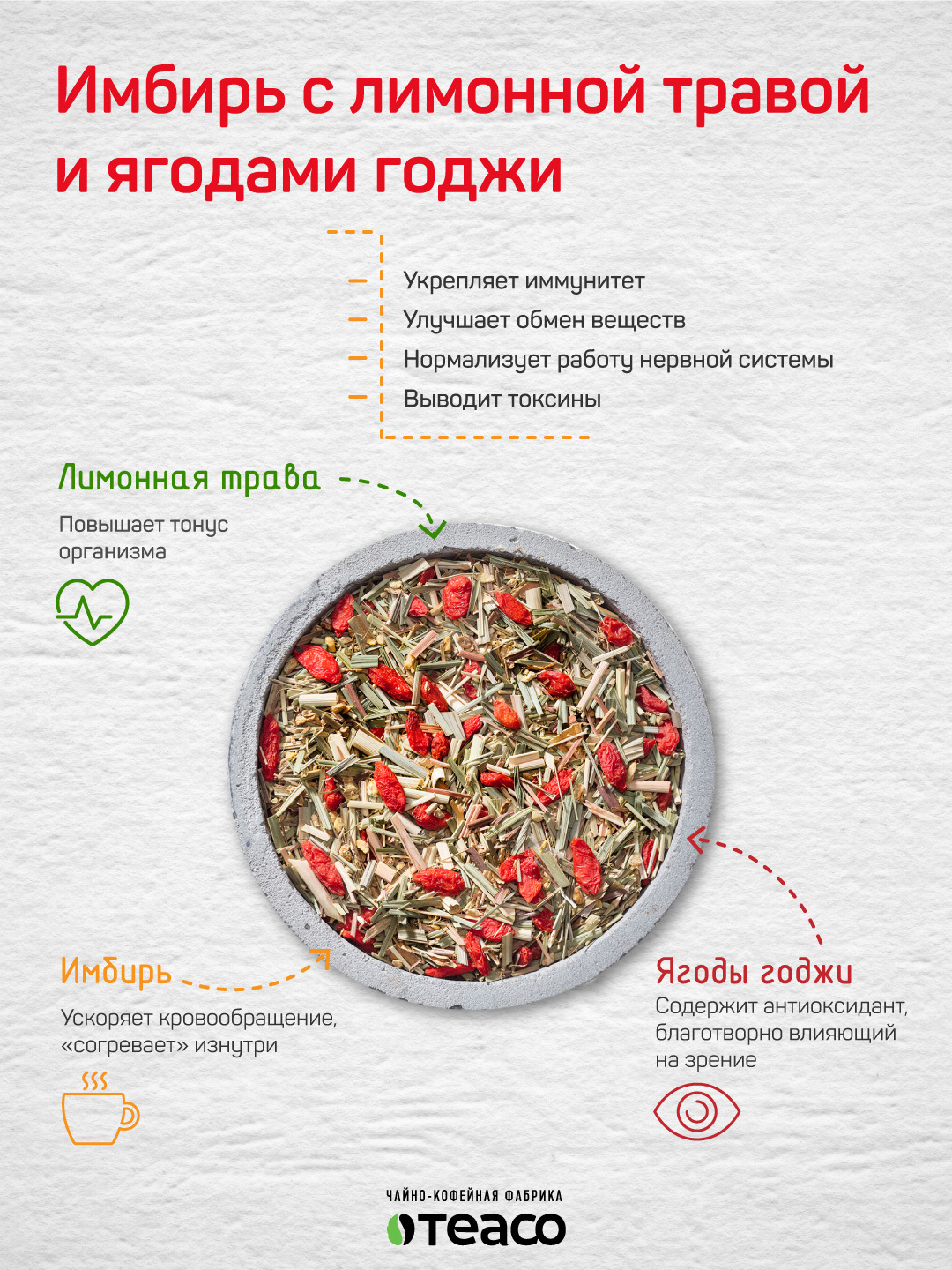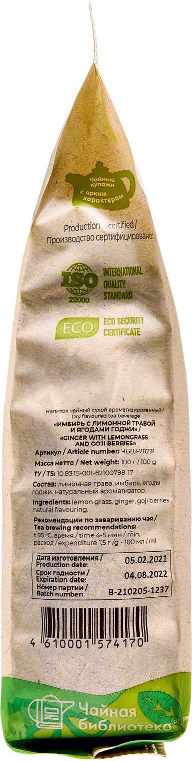 Чай листовой Чайная библиотека Имбирь с ягодами годжи и лемонграссом, 100 г