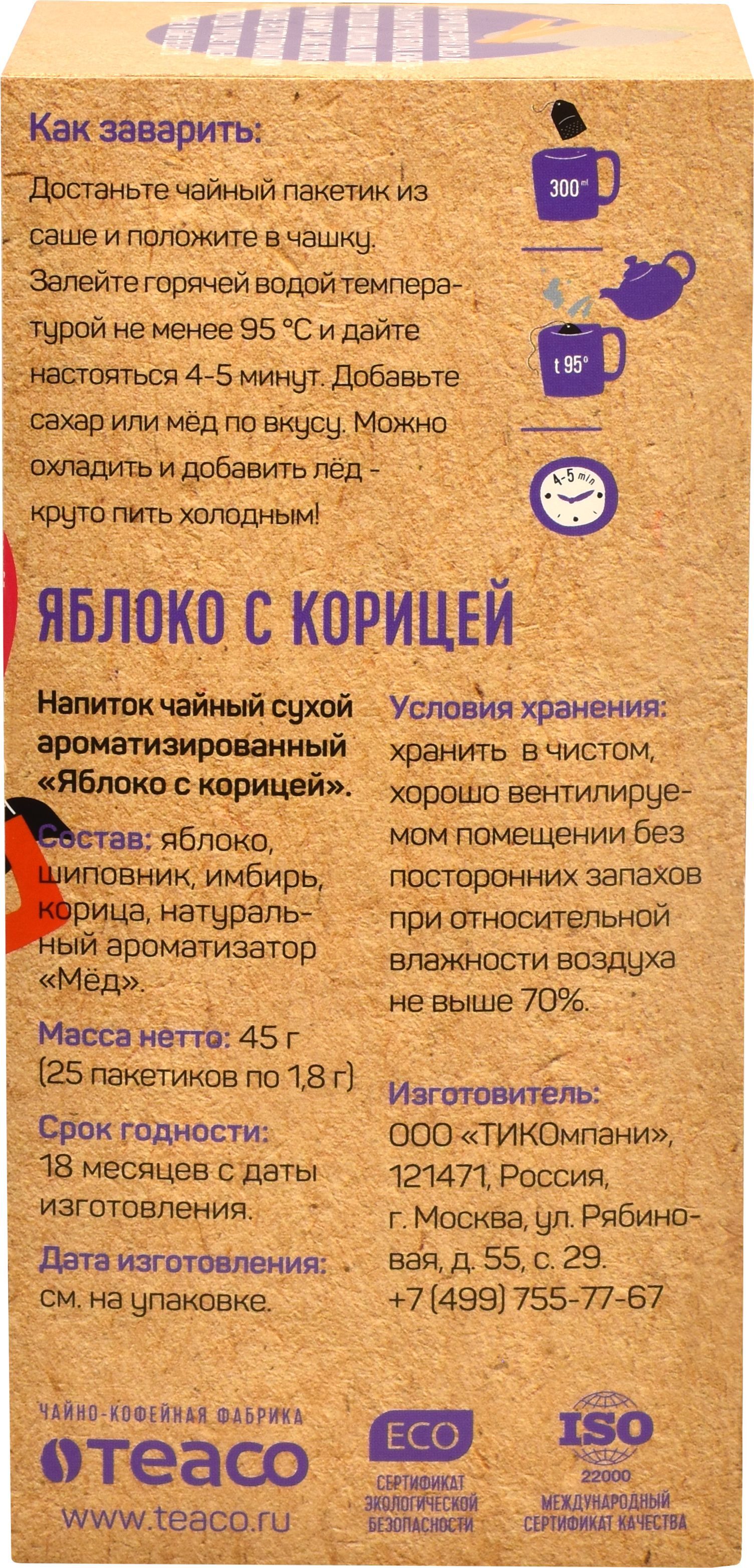 Пакетированный чай Teaco Чайная Библиотека Яблоко с корицей, 25 пакетов