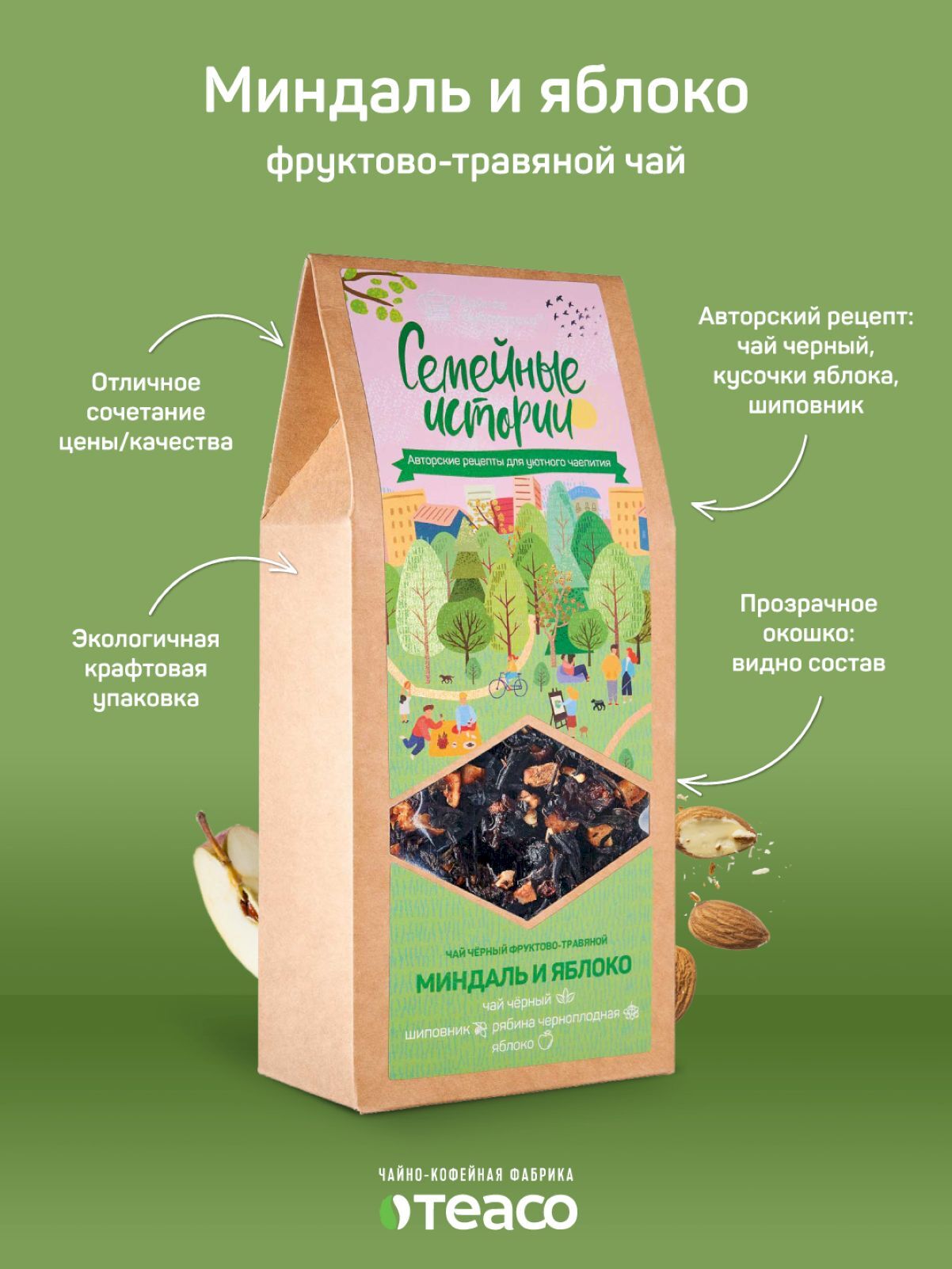 Чай листовой черный Коллекция чая Семейные истории Миндаль и яблоко, с фруктами, 80 г