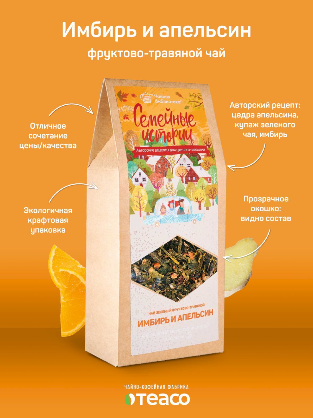 Чай листовой зеленый Коллекция чая Семейные истории Имбирь и Апельсин, с фруктами, 70 г