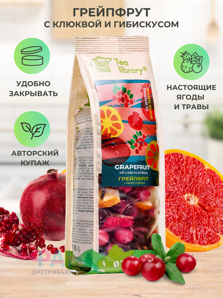 Чай листовой фруктовый Чайная Библиотека Грейпфрут с клюквой и гибискусом, авторский, 100г