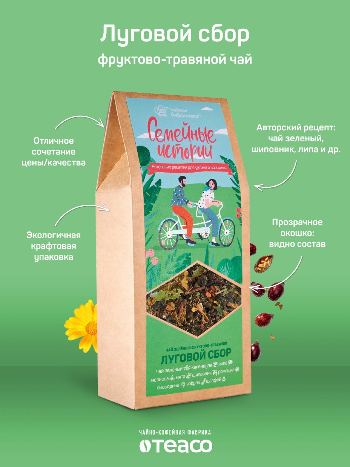 Чай листовой зеленый Коллекция чая Семейные истории Луговой сбор с травами, 60г