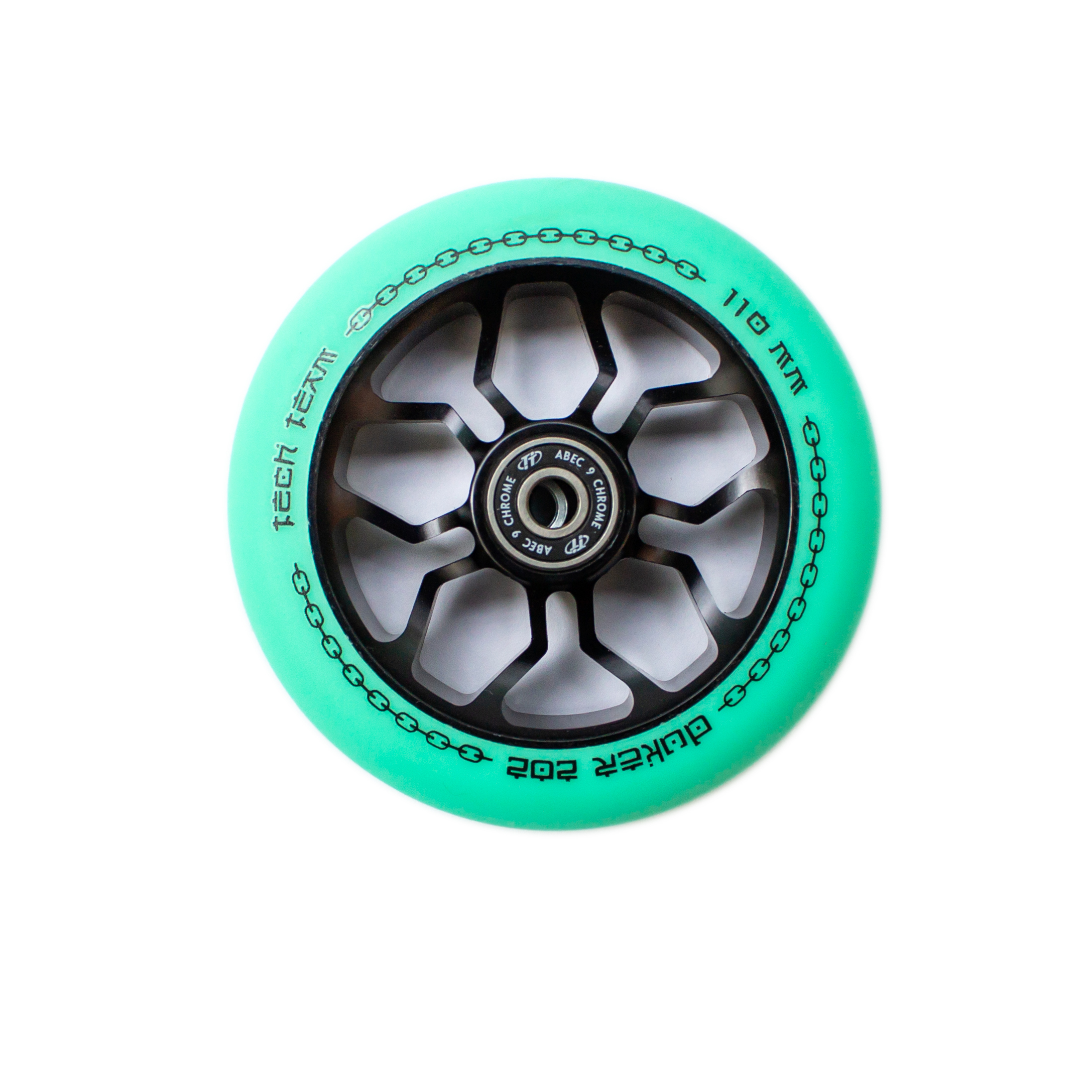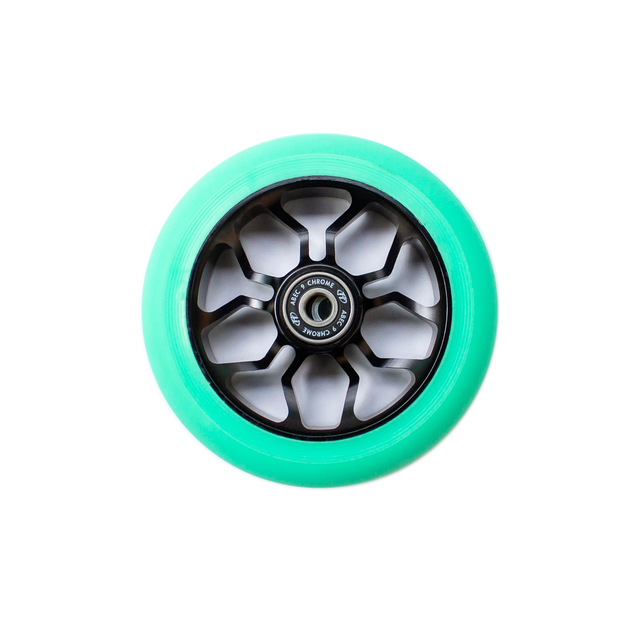 Колесо для трюкового самоката 110 мм, алюминиевый обод, с подшипниками ABEC-9, Duker 202-celadon