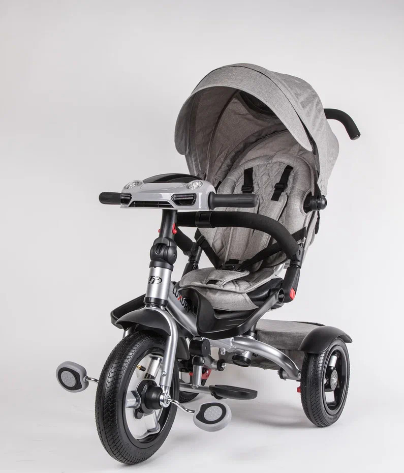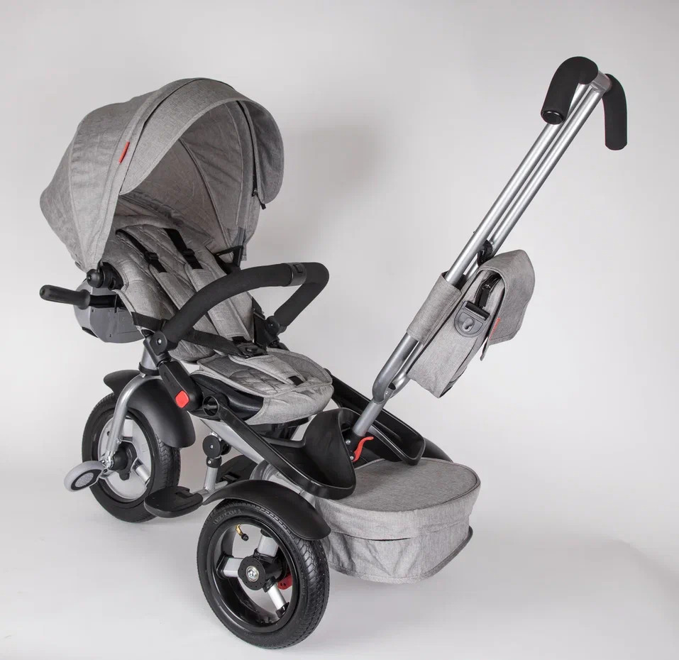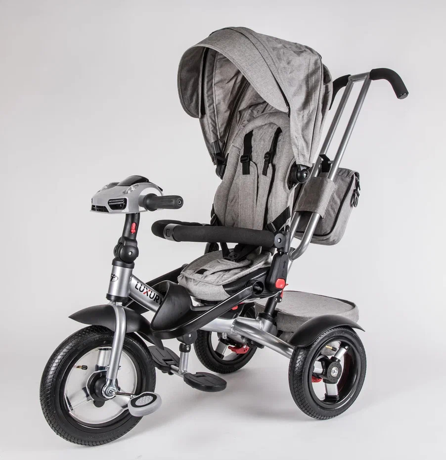 Детский трехколесный велосипед с ручкой Tech Team Luxury 2022 серый