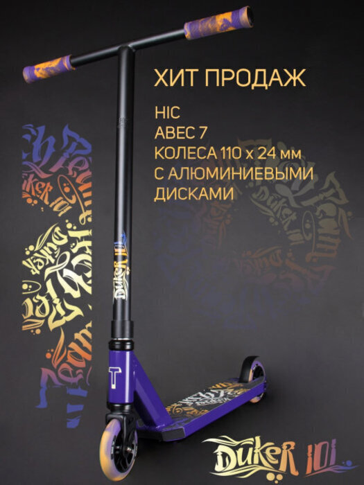 Самокат Трюковой Tech Team Duker 101 (2021) сиреневый, 110 мм