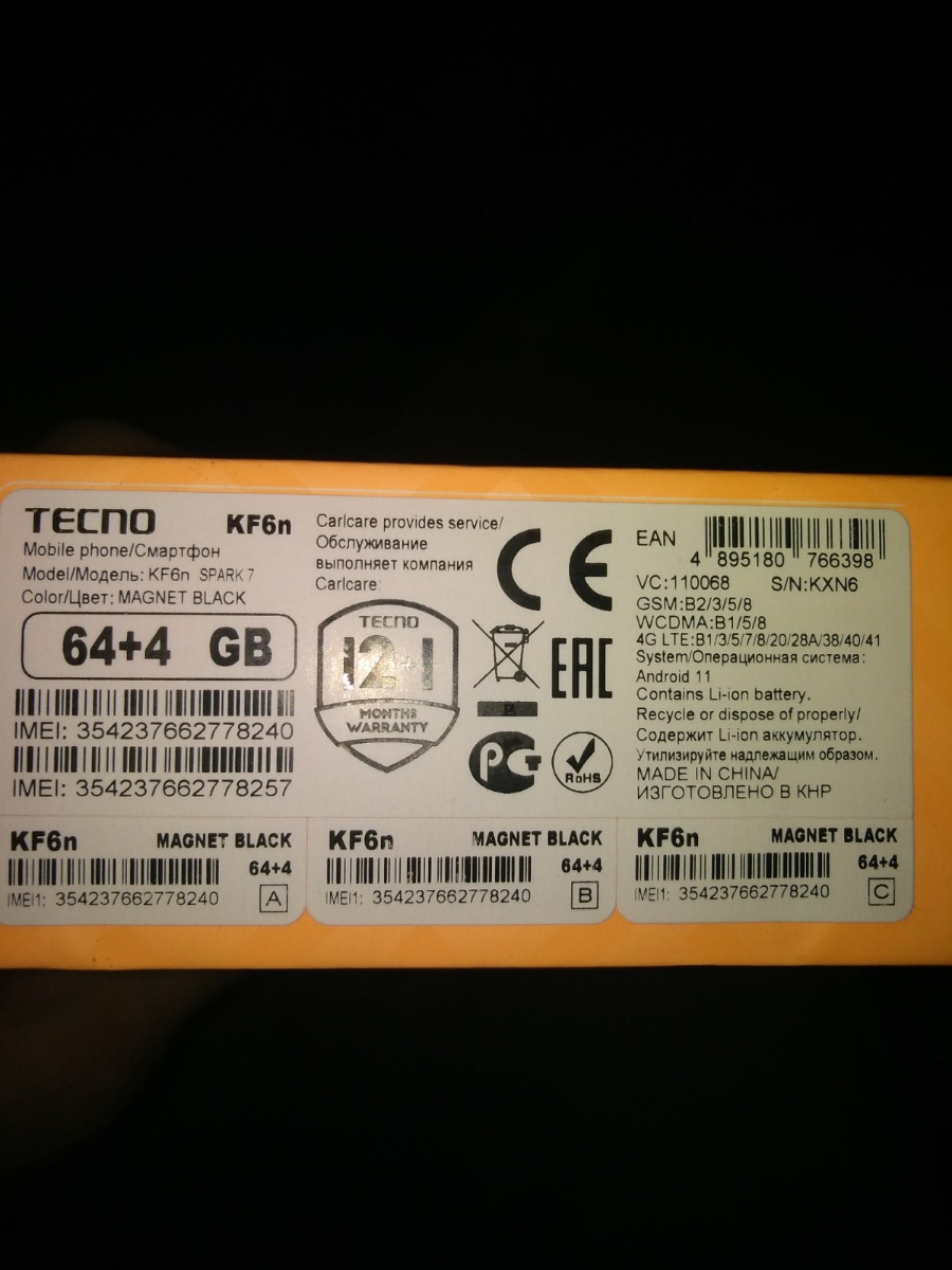 Смартфон Tecno SPARK 7 2/32GB, черный