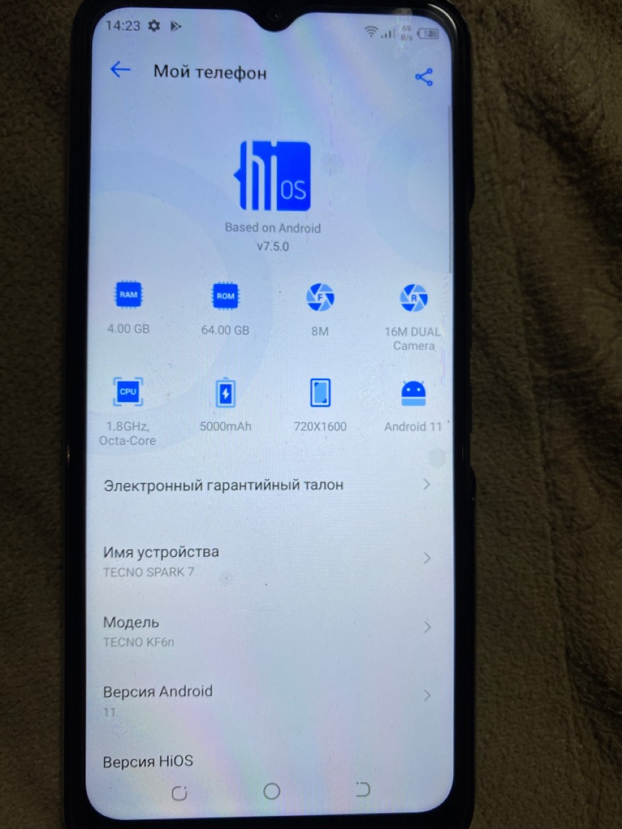 Смартфон Tecno Spark 7 4/64 ГБ 4/64GB, голубой
