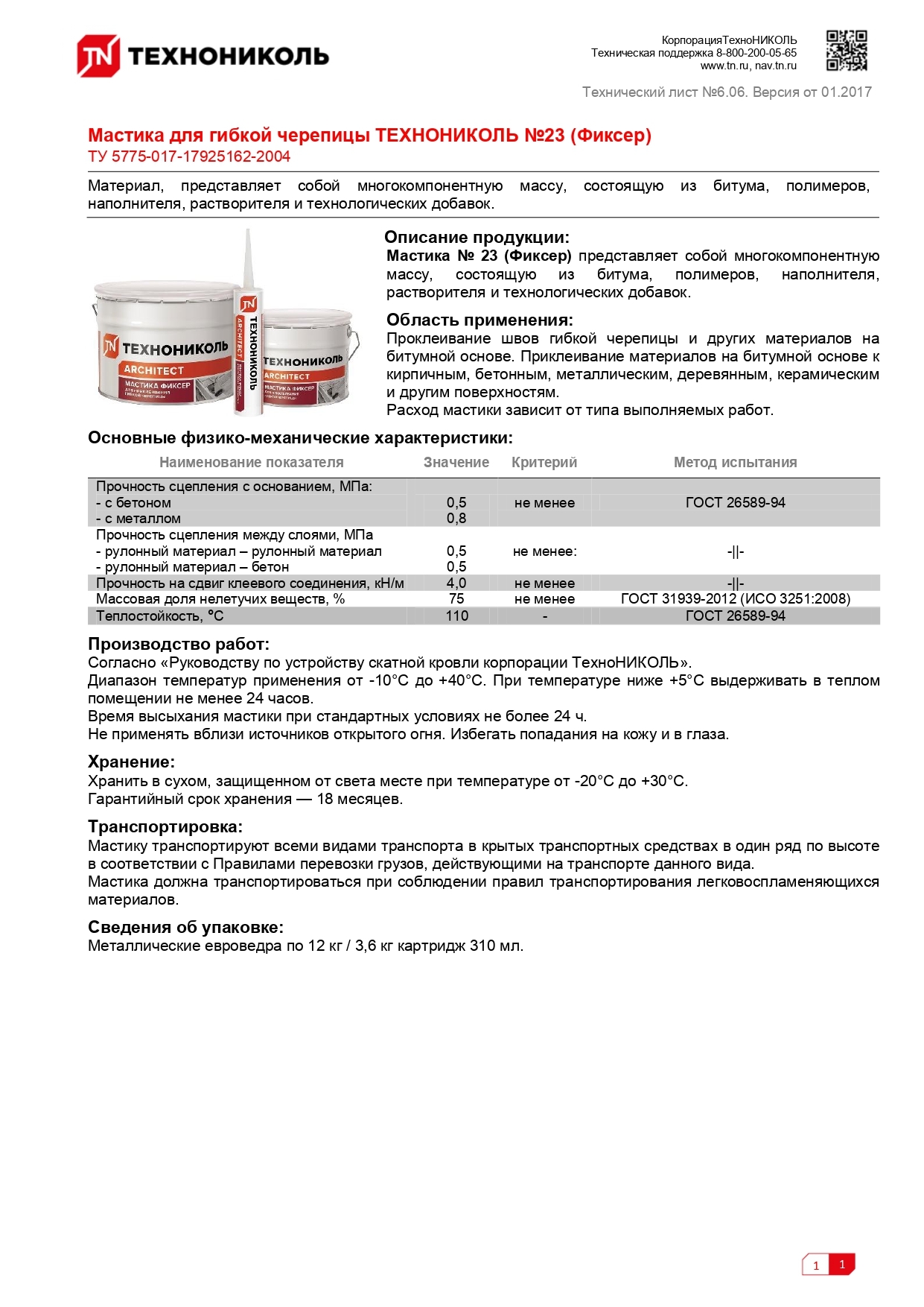 МАСТИКА ДЛЯ ГИБКОЙ ЧЕРЕПИЦЫ ТЕХНОНИКОЛЬ № 23 (ФИКСЕР)