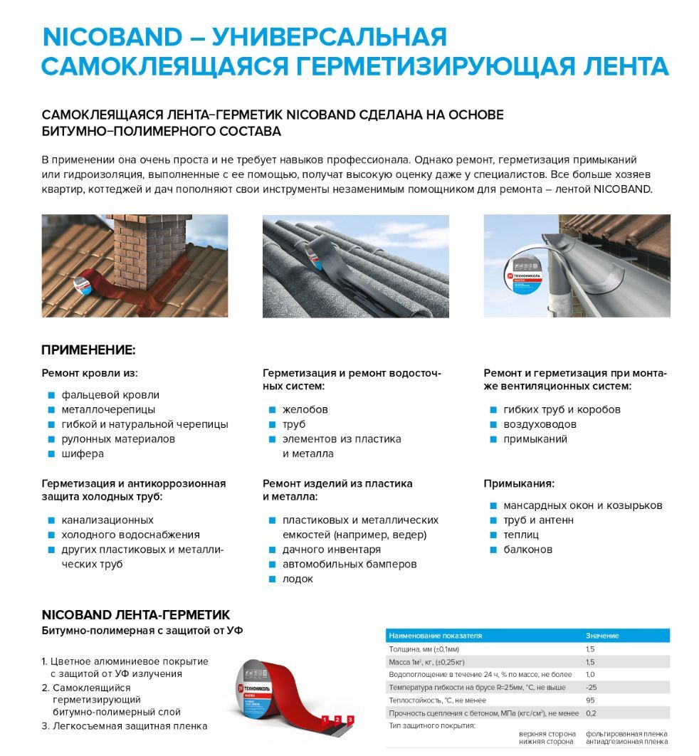 ЛЕНТА-ГЕРМЕТИК NICOBAND - ТЕХНОНИКОЛЬ, 3м х 15см, темно-серый