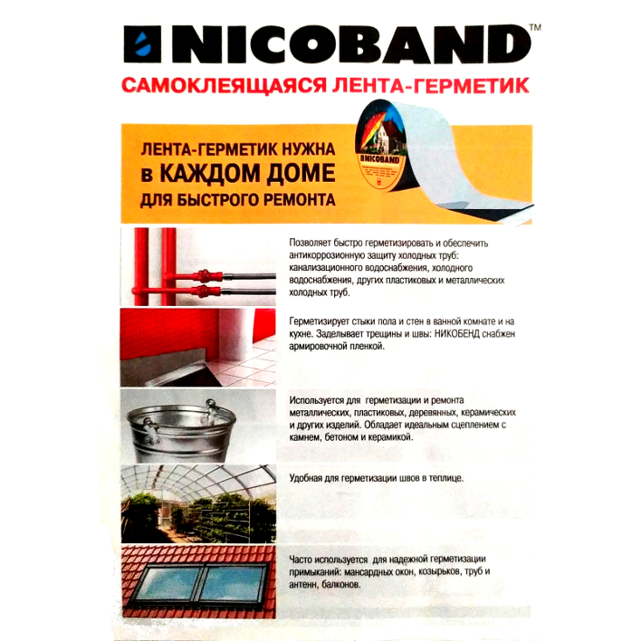 Лента-герметик ТехноНиколь NICOBAND Д3м, Ш5см, Серебристая