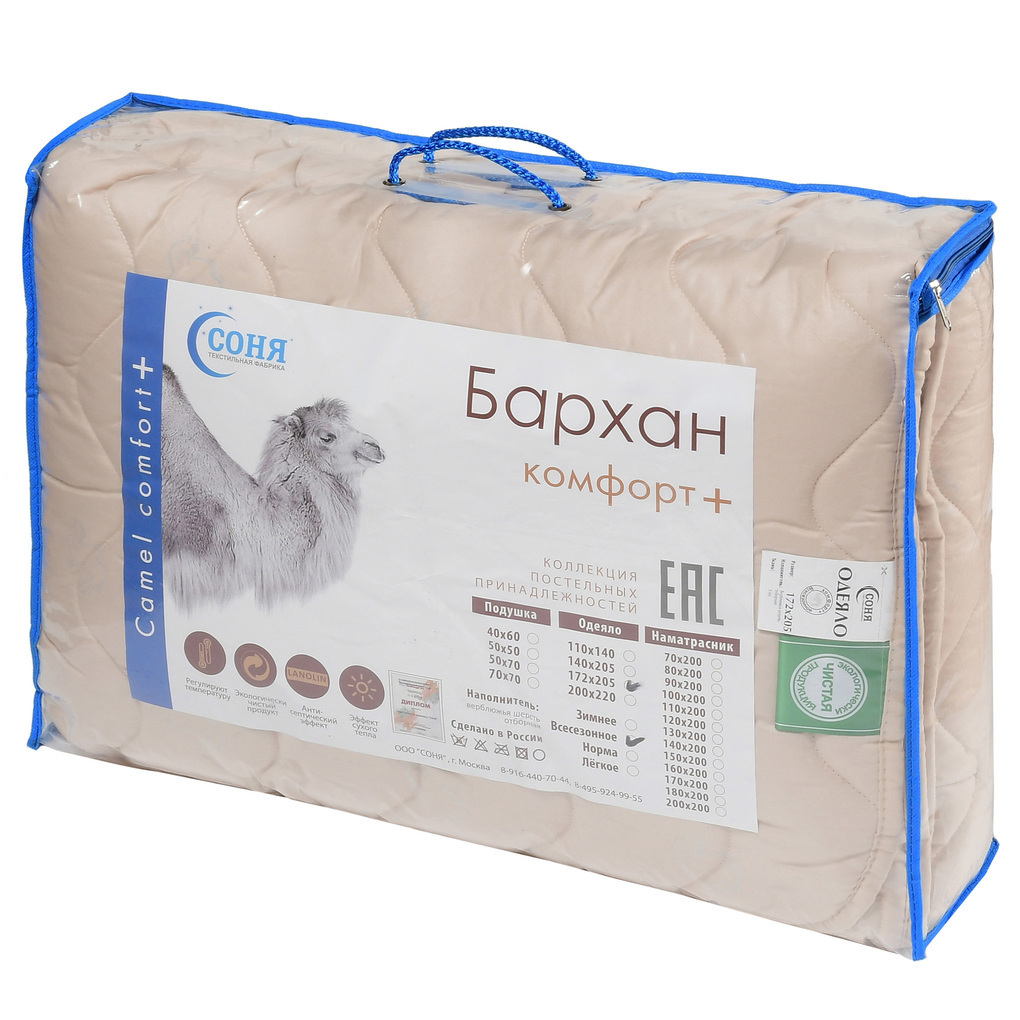Одеяло Текстильная Фабрика СОНЯ Бархан Комфорт зима 172x205, Зимнее, с наполнителем Верблюжья шерсть