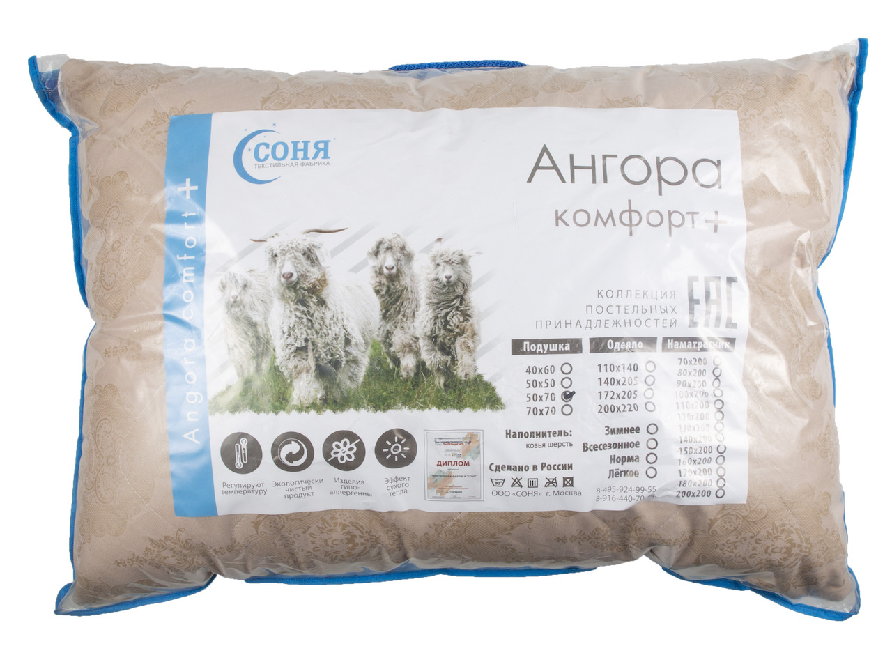 Подушка Текстильная Фабрика СОНЯ Ангора козья шерсть тик, средняя Кашемир, 50x70 см