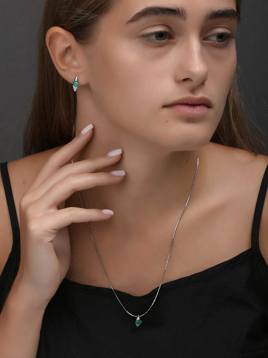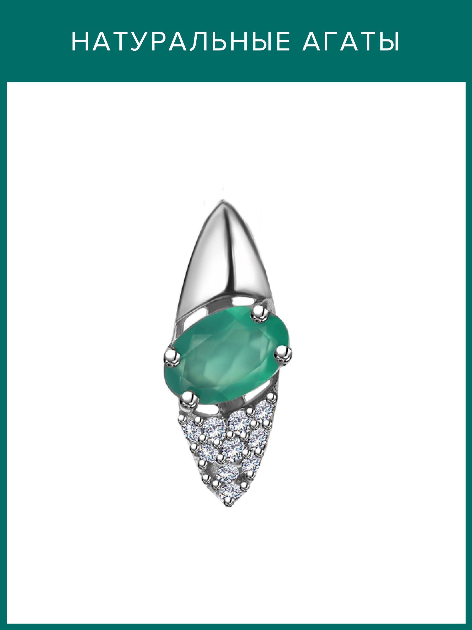 TEOSA Подвеска с зеленым агатом и фианитами / классическое украшение / серебро 925 пробы
