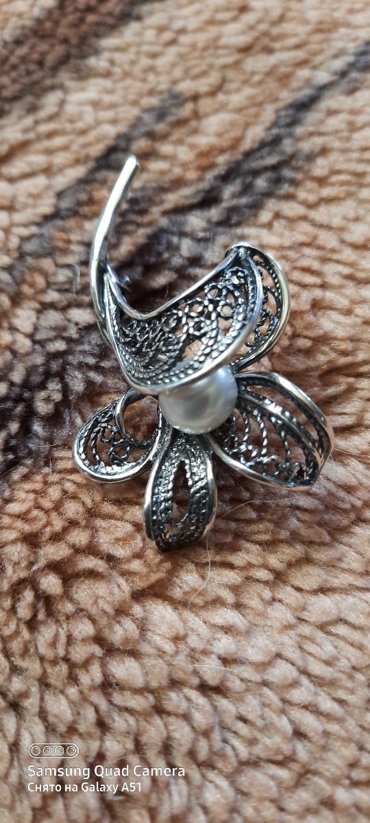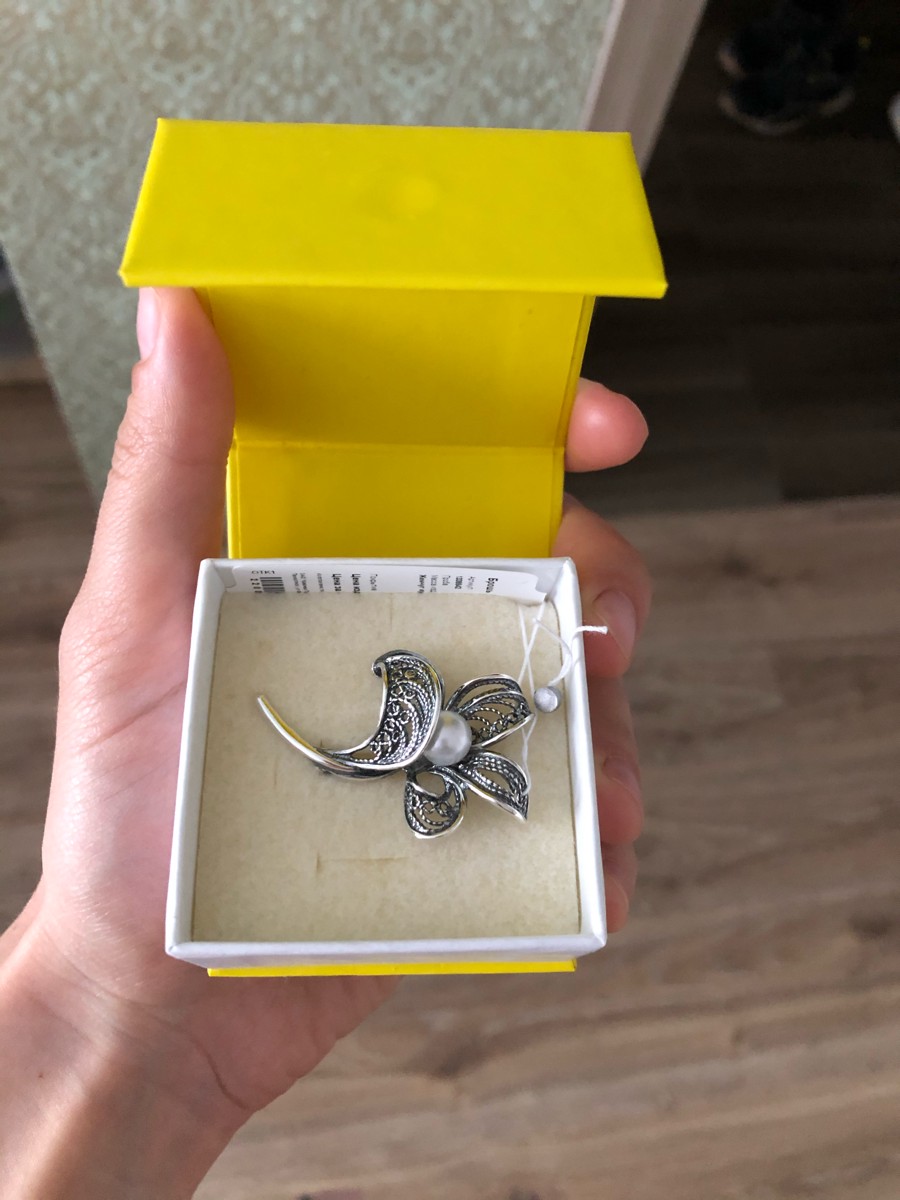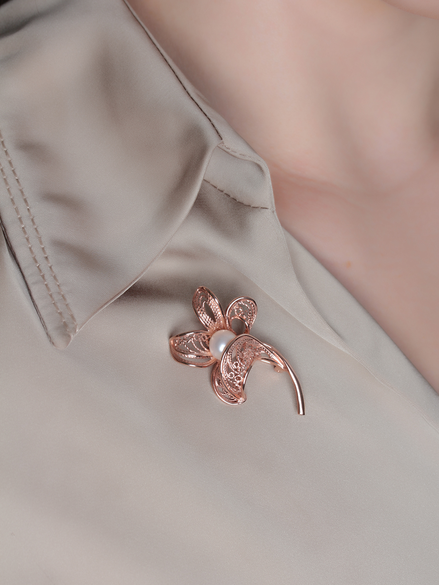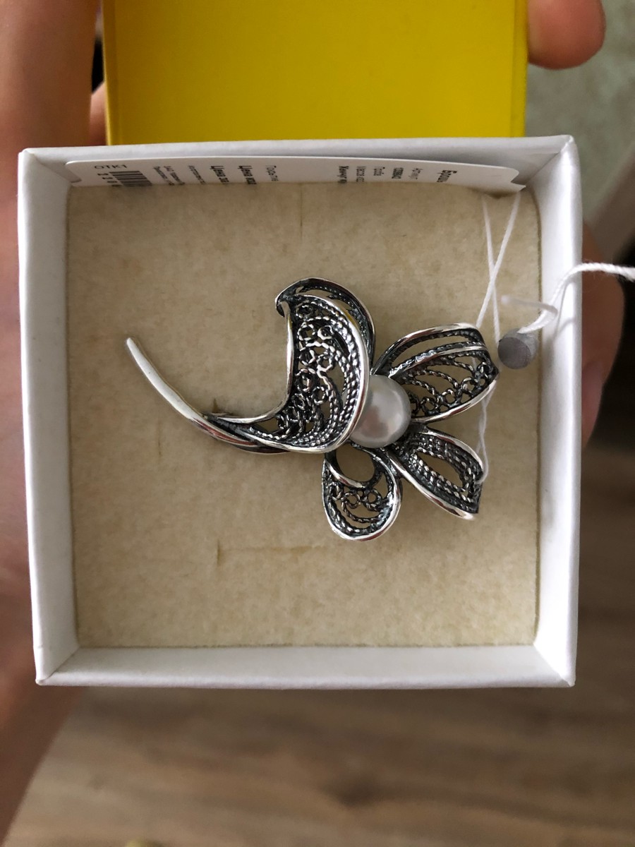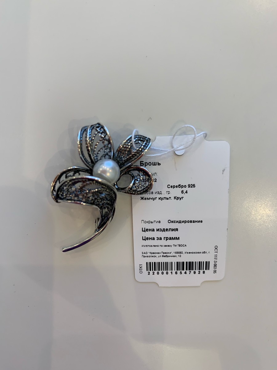 TEOSA Брошь Цветок с культивированным жемчугом / серебро 925 пробы в позолоте / украшение на подарок
