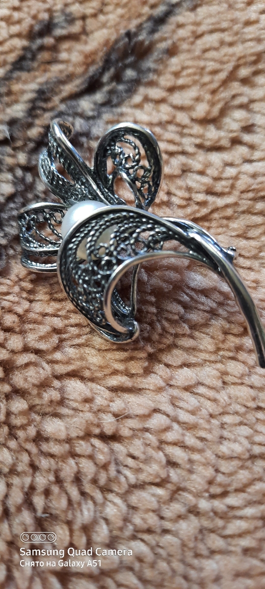 TEOSA Кольцо серебряное с культивированным жемчугом и фианитами / свадебное украшение, колечко на каждый день