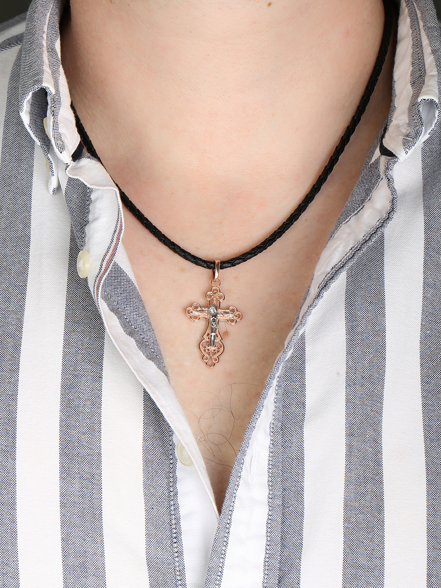TEOSA Крестик православный религиозный, Спаси и Сохрани / серебро 925 пробы в золочении / комбинированное покрытие