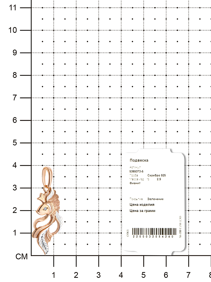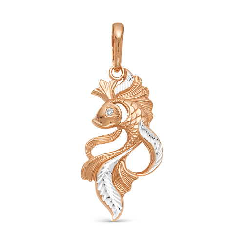 TEOSA Подвеска Золотая рыбка, кулон для детей и взрослых с фианитом / Рыбка с короной / серебро 925 пробы / украшение на подарок