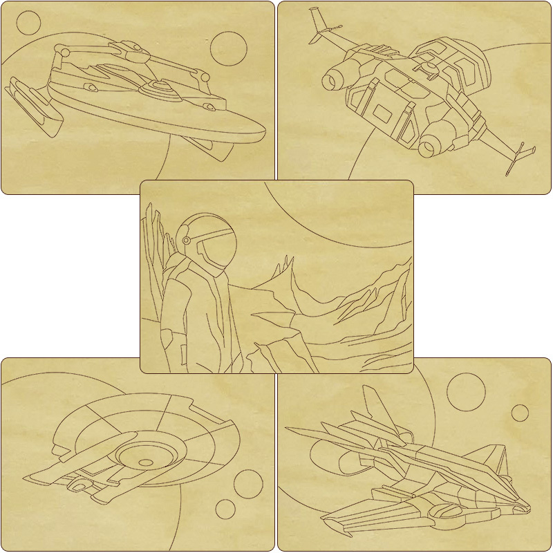 Набор для выжигания Тепло дерева "Космос". Формат А5. Комплект 5 шт. Доски для выжигания/рисования/творчества.