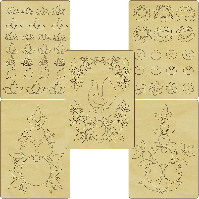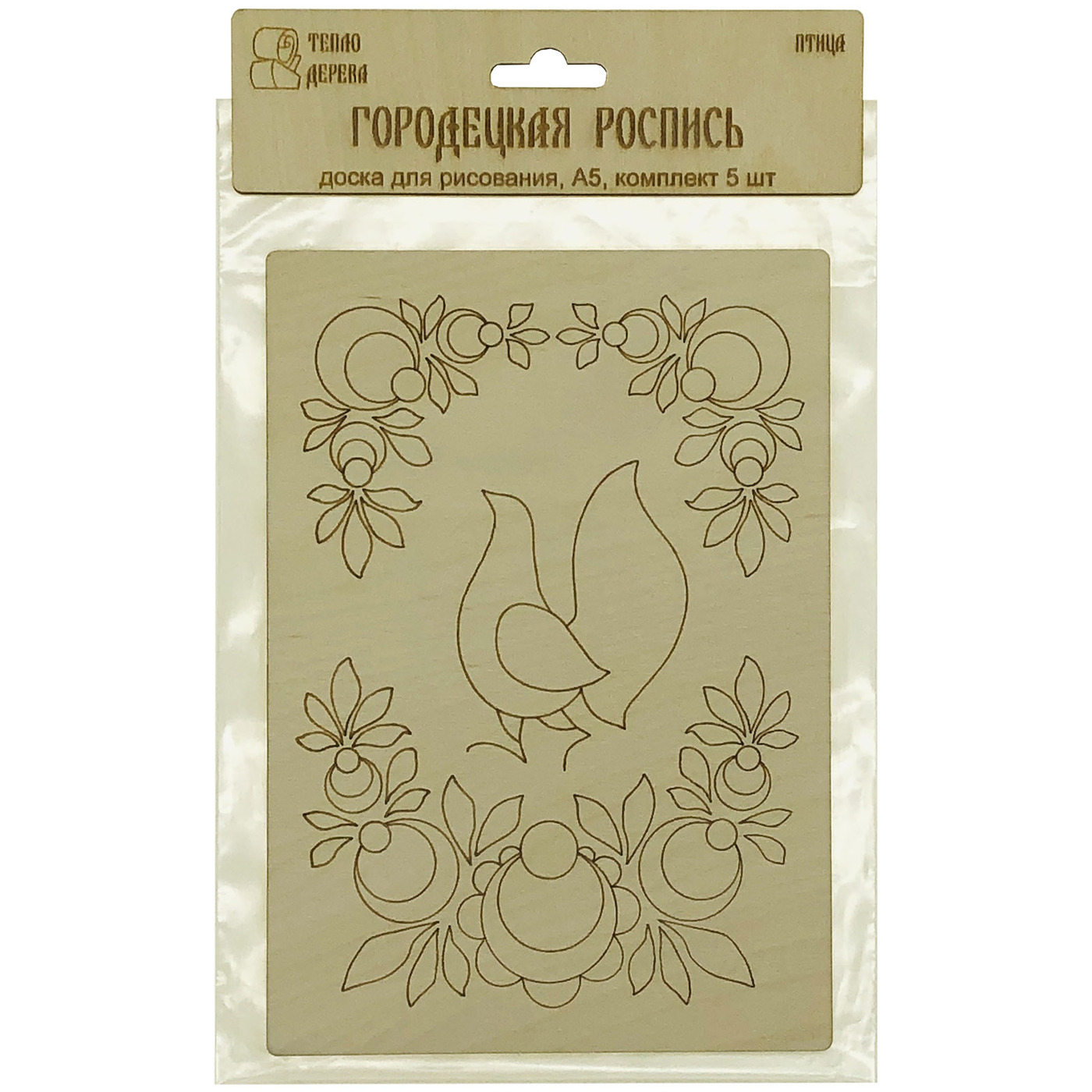 Городецкая роспись. Птица. Формат А5. Комплект 5 шт. Доски для рисования/росписи/творчества.