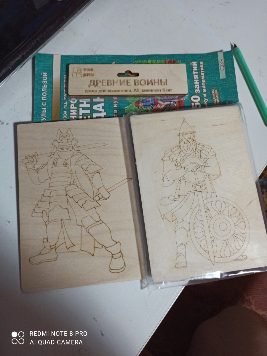 Набор для выжигания Тепло дерева "Древние воины". Формат А5. Комплект 5 шт. Доски для выжигания/рисования/творчества.