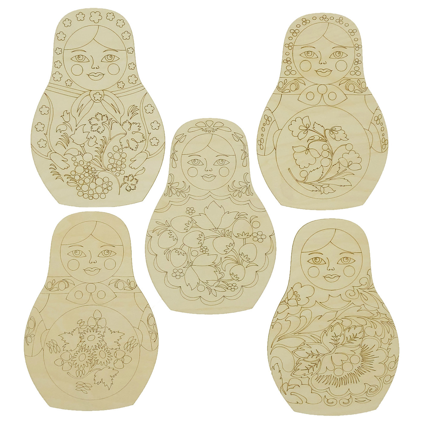 Хохломская роспись. Матрешки. Формат А5. Комплект 5 шт. Доски для рисования/росписи/творчества.