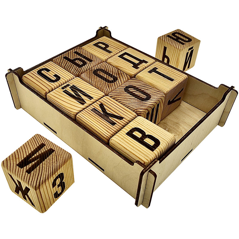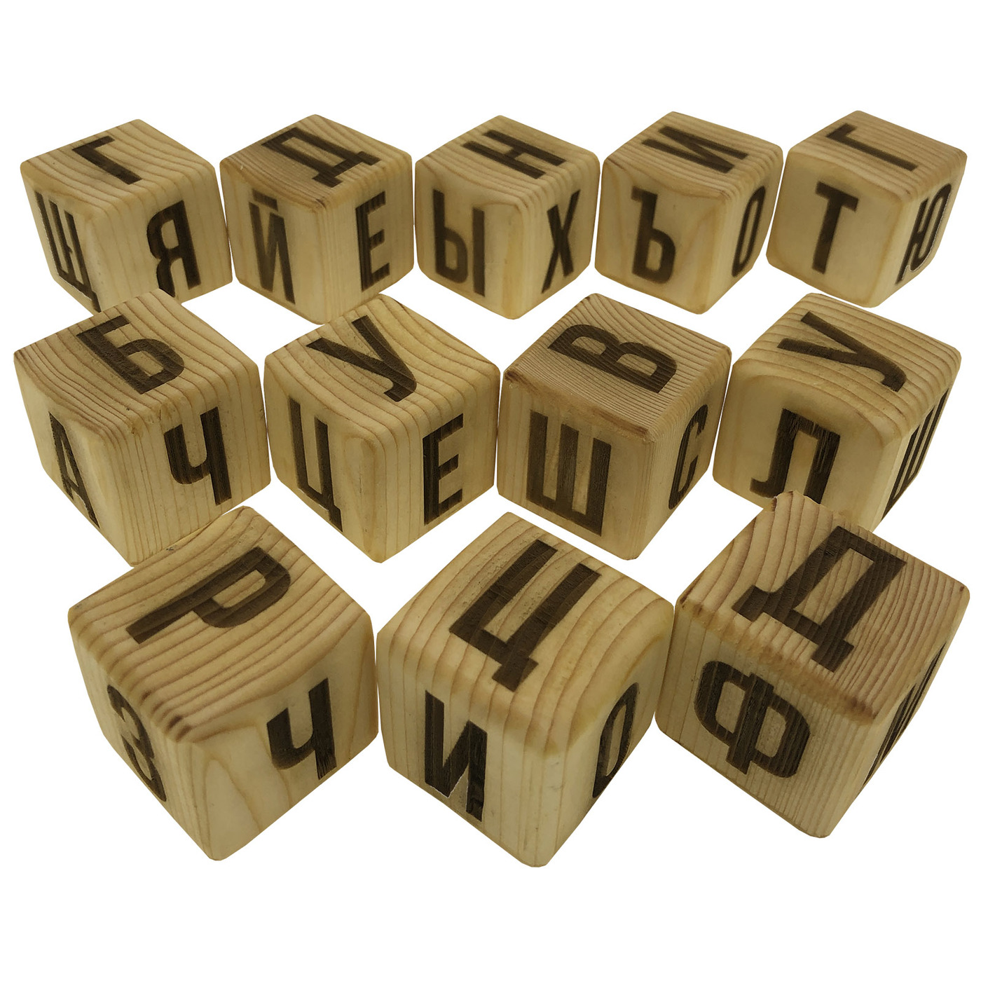Эко-кубики "Русские буквы", сосна, 40х40х40 мм, комплект 12 шт.