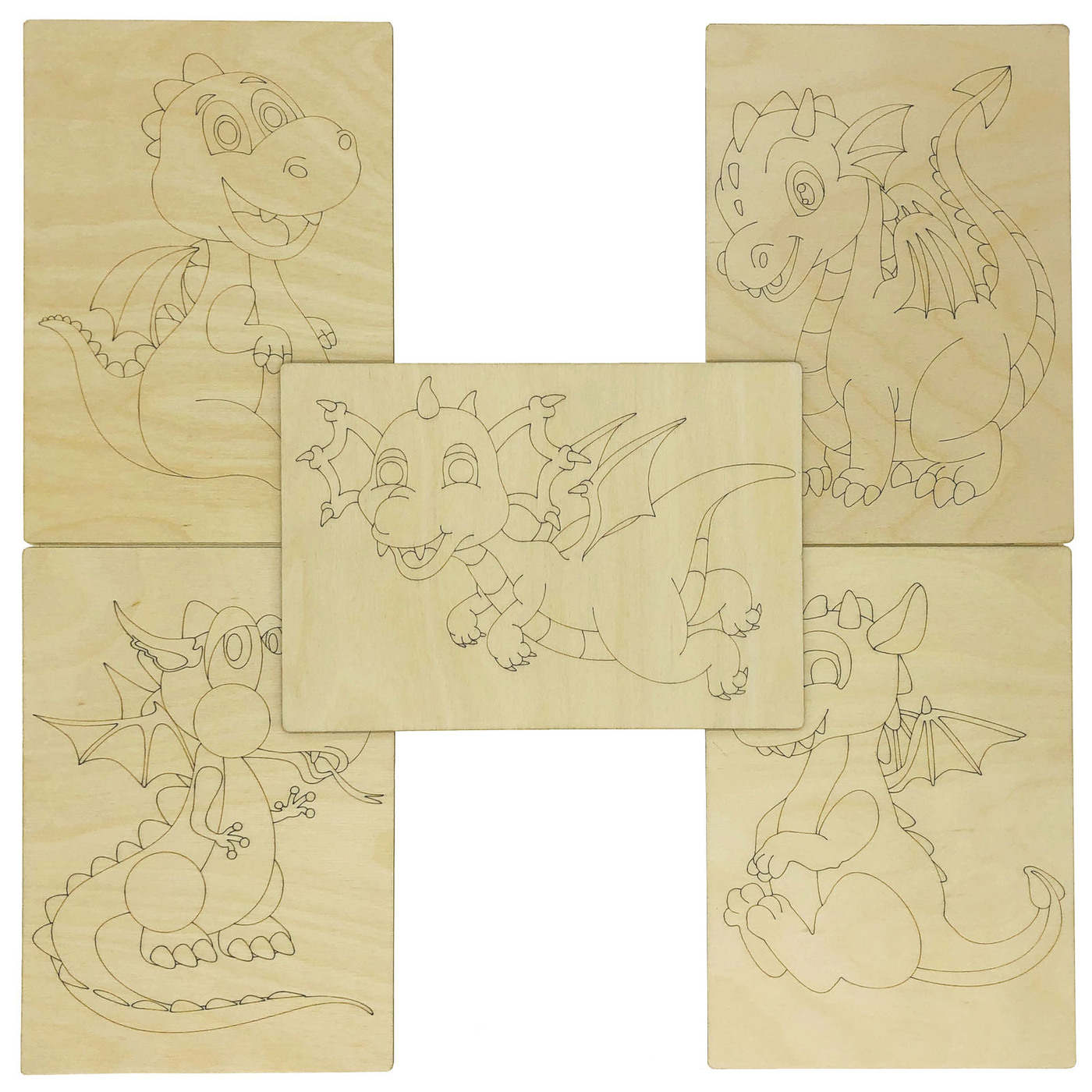 Дракончики. Формат А5. Комплект 5 шт. Доски для рисования/росписи/творчества.