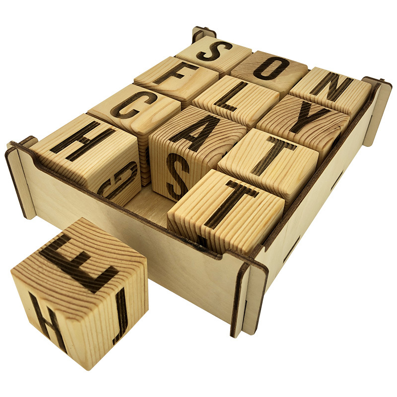 Эко-кубики "Английские буквы", сосна, 40х40х40 мм, комплект 12 шт.