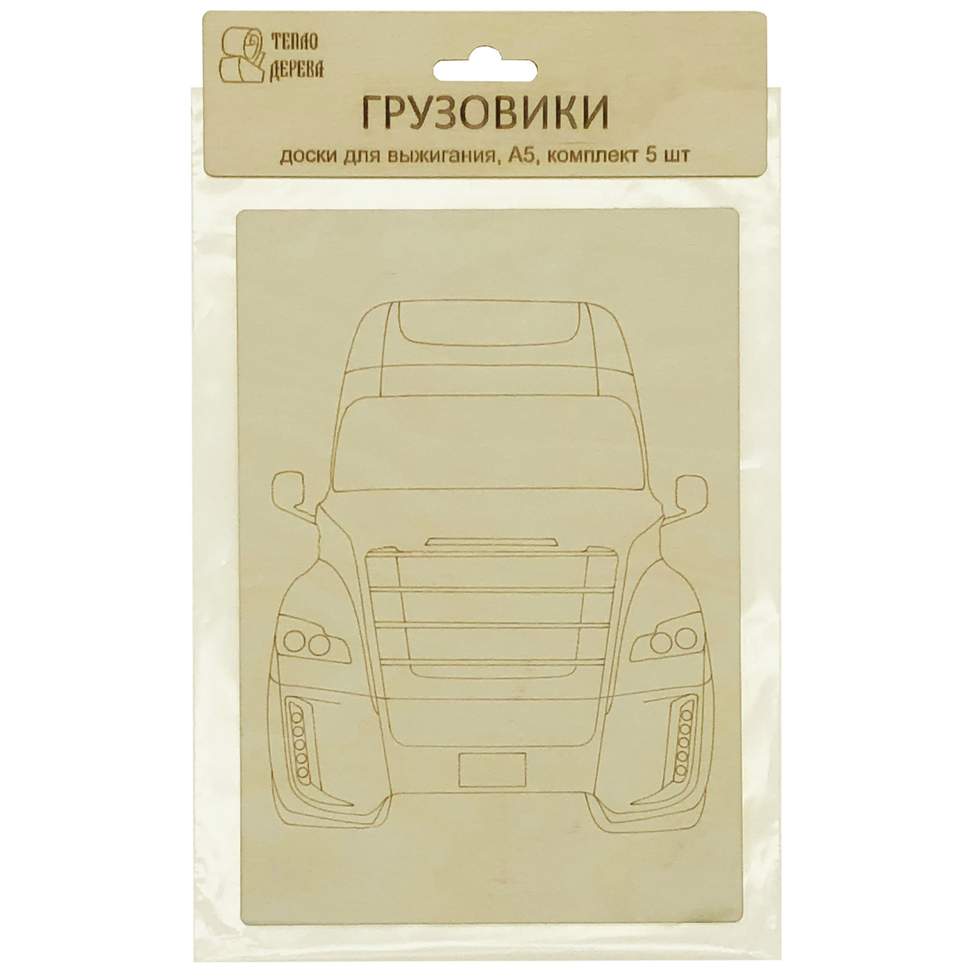 Набор для выжигания Тепло дерева "Грузовики". Формат А5. Комплект 5 шт. Доски для выжигания/рисования/творчества.