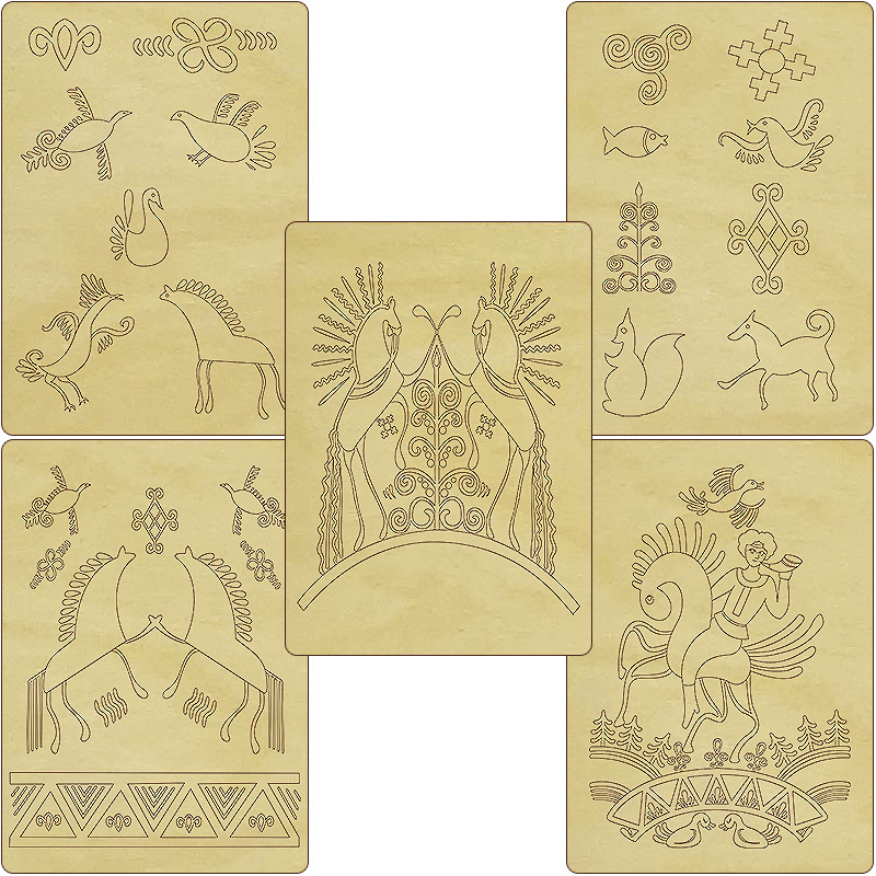 Мезенская роспись. Кони. Формат А5. Комплект 5 шт. Доски для рисования/росписи/творчества.